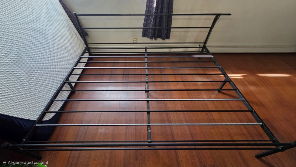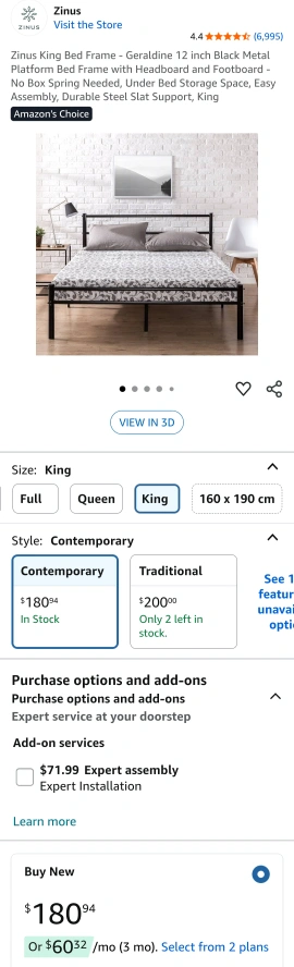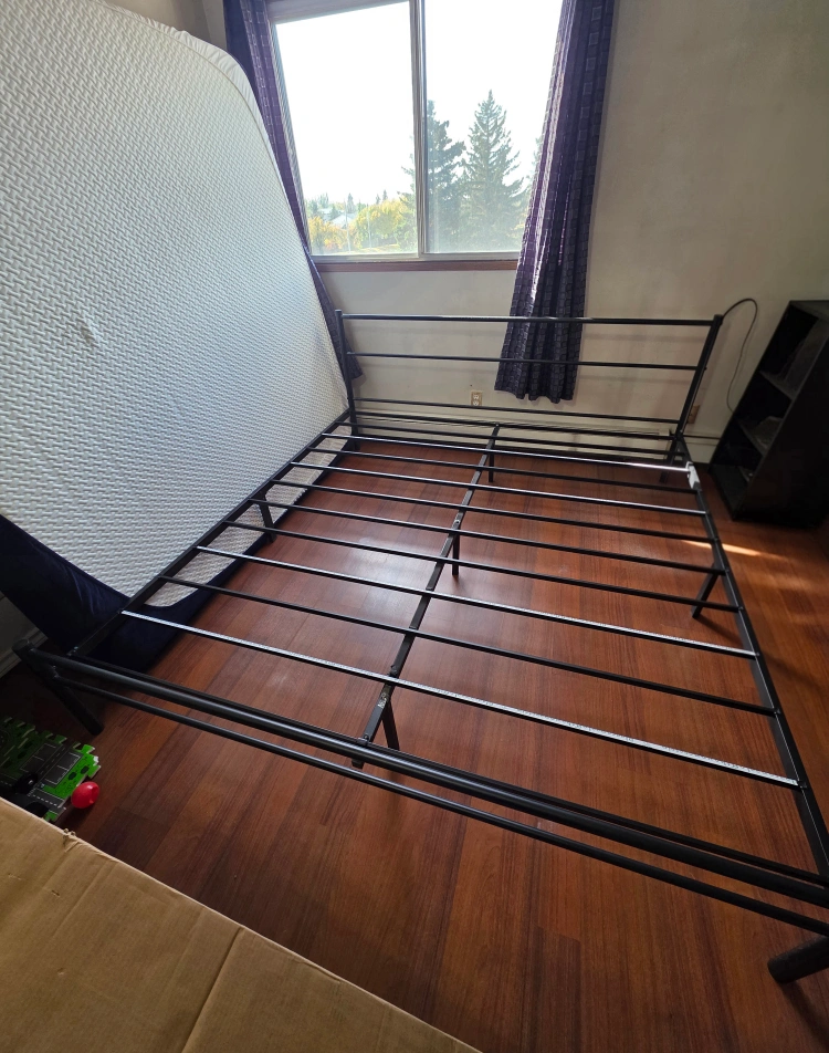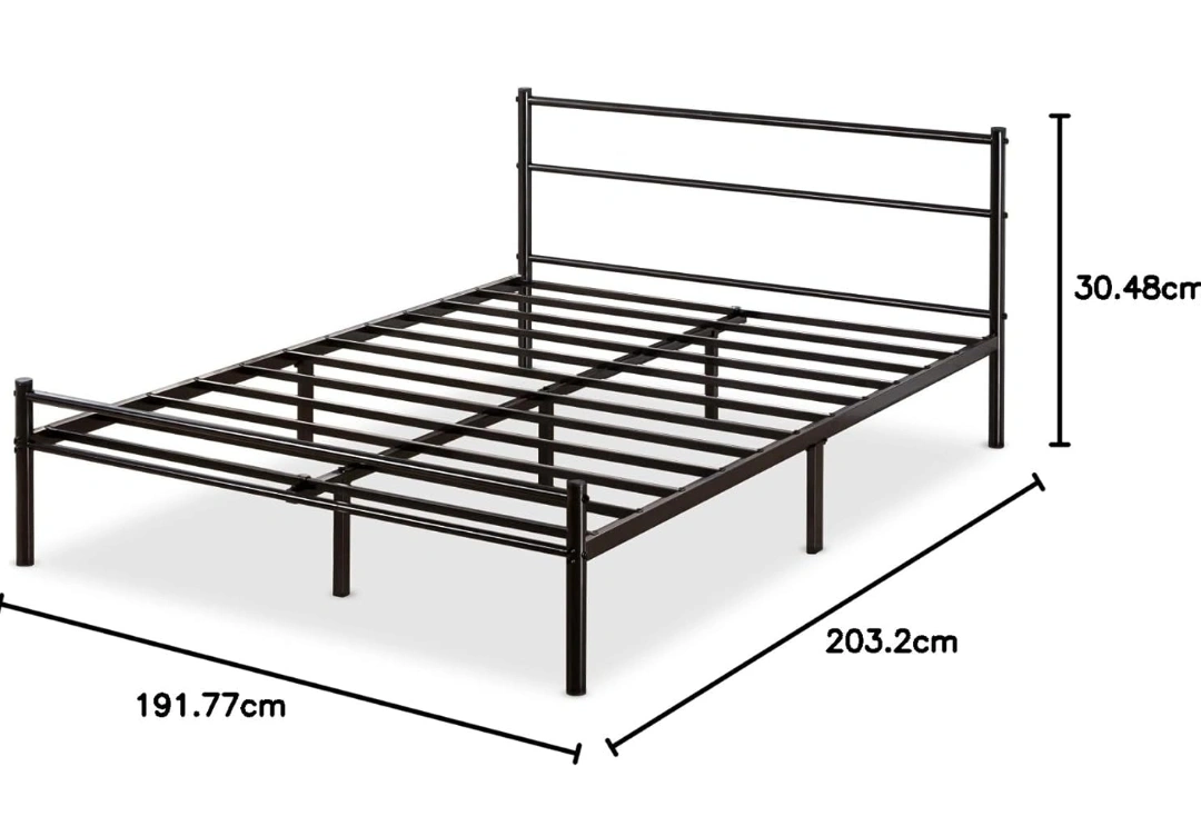 Selling a Zinus Geraldine 12 inch black metal platform bed frame with headboard and footboard. It's a king size and features no box spring needed, under bed storage space, easy assembly, durable steel slat support. Originally bought for $180.94