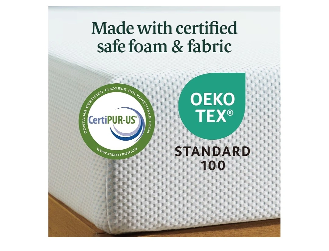 Selling a Zinus mattress with a comfortable feel l. It's made with certified safe foam and fabric, ensuring a comfortable and safe sleep experience. The mattress is designed for incredible comfort and dependable value. It is made with flexible polyurethane foam and is OEKO-TEX Standard 100 certified