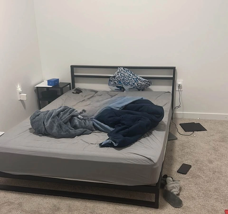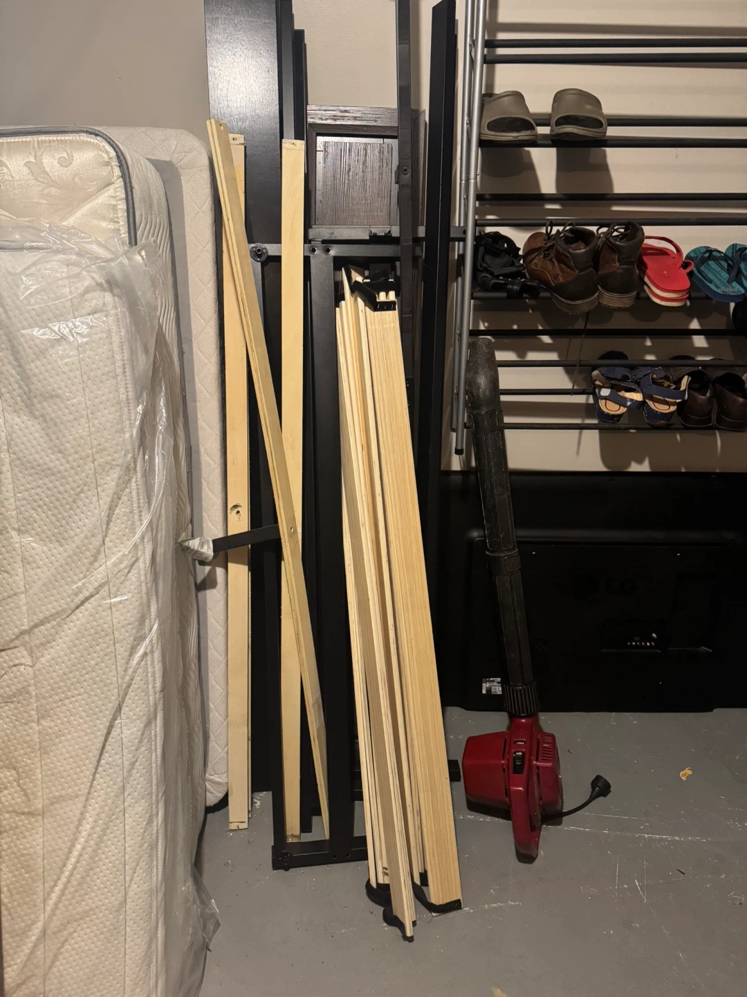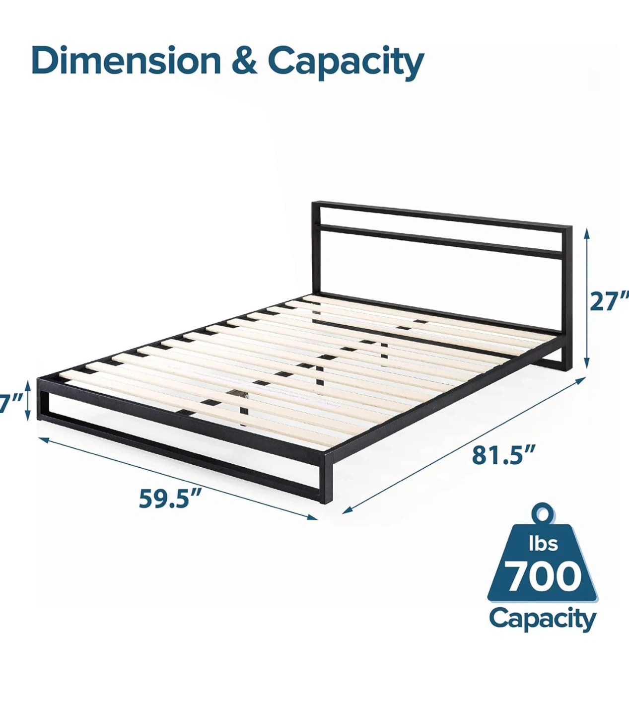 MINIMALIST STYLE FOR MINIMAL EFFORT - With its clean, contemporary silhouette, undeniable durability and piece-of-cake assembly, the Trisha Platform Bed is a staple for those who appreciate the simple things in life LOW PROFILE - 7-inch platform height is perfect for taller mattresses or for those who prefer their bed lower to the ground; twin size supports a maximum weight capacity of 350 lbs, while all other sizes can support up to 700 lbs NO BOX SPRING NEEDED - Reliable wood slats are designed to support and extend the life of your latex, memory foam or spring mattress without the need for a box spring EASY ASSEMBLY - All parts, tools and instructions are shipped straight to your door in one efficiently packed box for simple set-up that takes less than an hour Includes Zinus 8 Inch Foam and Spring Mattress Bed Frame: 120$ Matress: 80$ Take both: 180$ Bed dismantled and ready to take home.