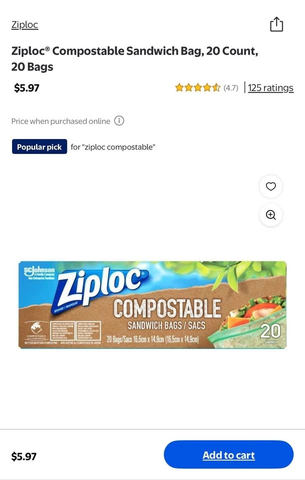 BPI-certified bags break down in industrial composting facilities, helping divert waste from landfill. Grip 'N Seal Technology: Easy-open tab plus double zipper gives a tight, leak-resistant seal you can feel and hear. Perfect lunch size: 810mL bags hold sandwiches, fruit, veggies, and snacks for school, office, picnics, and travel. Durable plant-based material locks in freshness and flavour just like regular Ziploc bags. Carton made with 100% recycled paperboard; 20-count value pack supports sustainable habits every day.