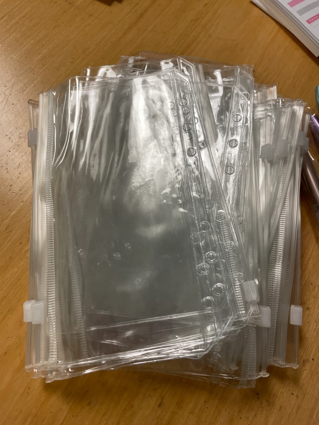 80Selling clear zipper binder pouches. Great for organizing your school or office supplies! I have 4 frosty and 3 clear packs. 50 per pack. I had a business and we closed down. Need everything gone ASAP.