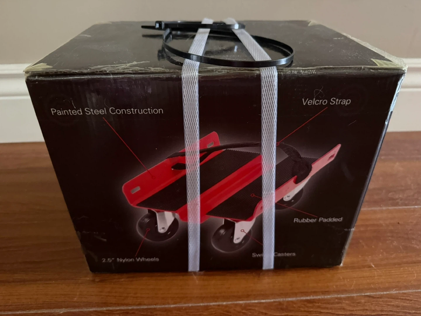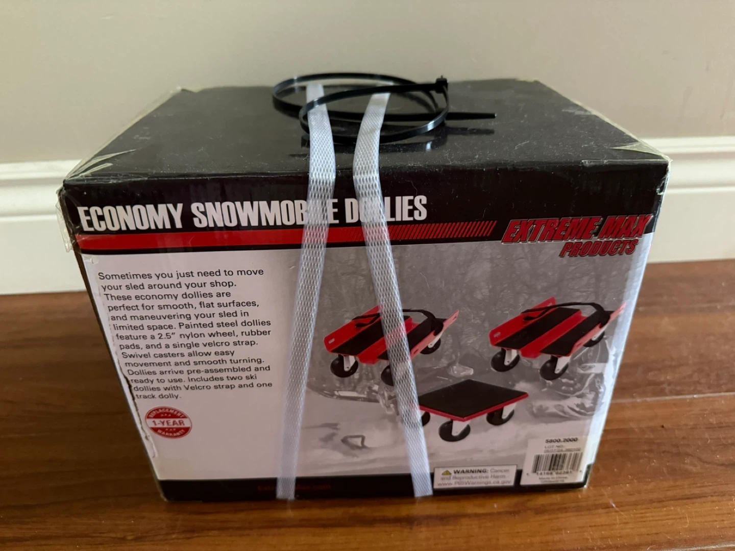 Brand new still in the box, never opened. These economy dollies are perfect for smooth, flat surfaces and manoeuvring your sled. Painted steel construction with 2.5" nylon wheels, rubber pads, and a single "micro strap". Dollies arrive pre-assembled and ready to use! Includes two ski dollies with Velcro strap and one track dolly.