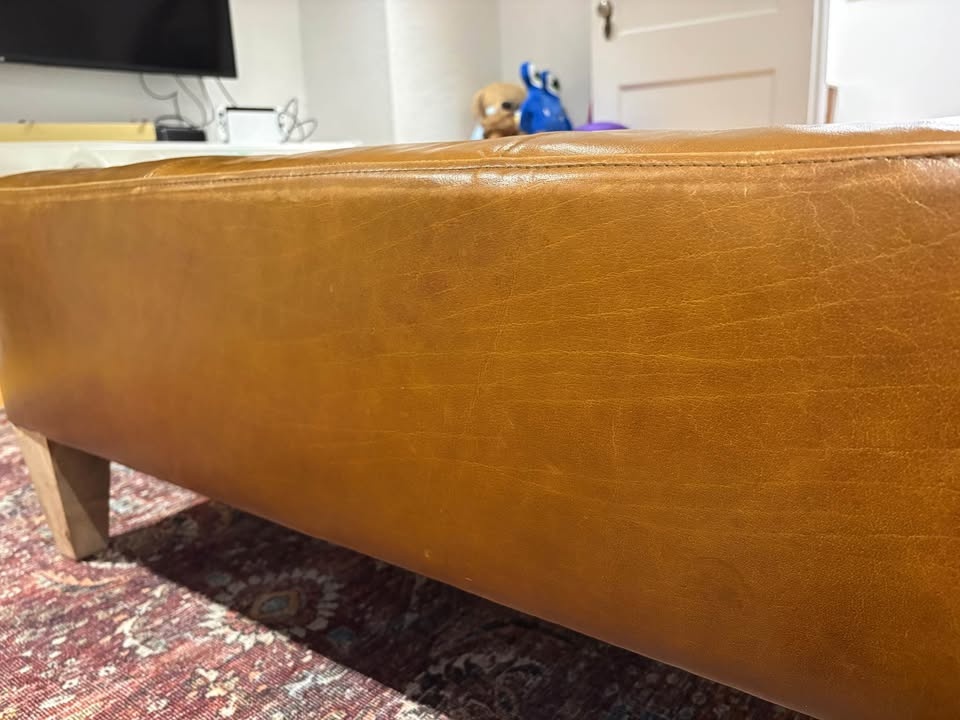 Awesome large square leather ottoman in great condition. Clean, non-smoking home. 3’x3’x16”H. Screw in legs for easy transport. Pickup Royal York/Lakeshore area. If ad is up it’s available.