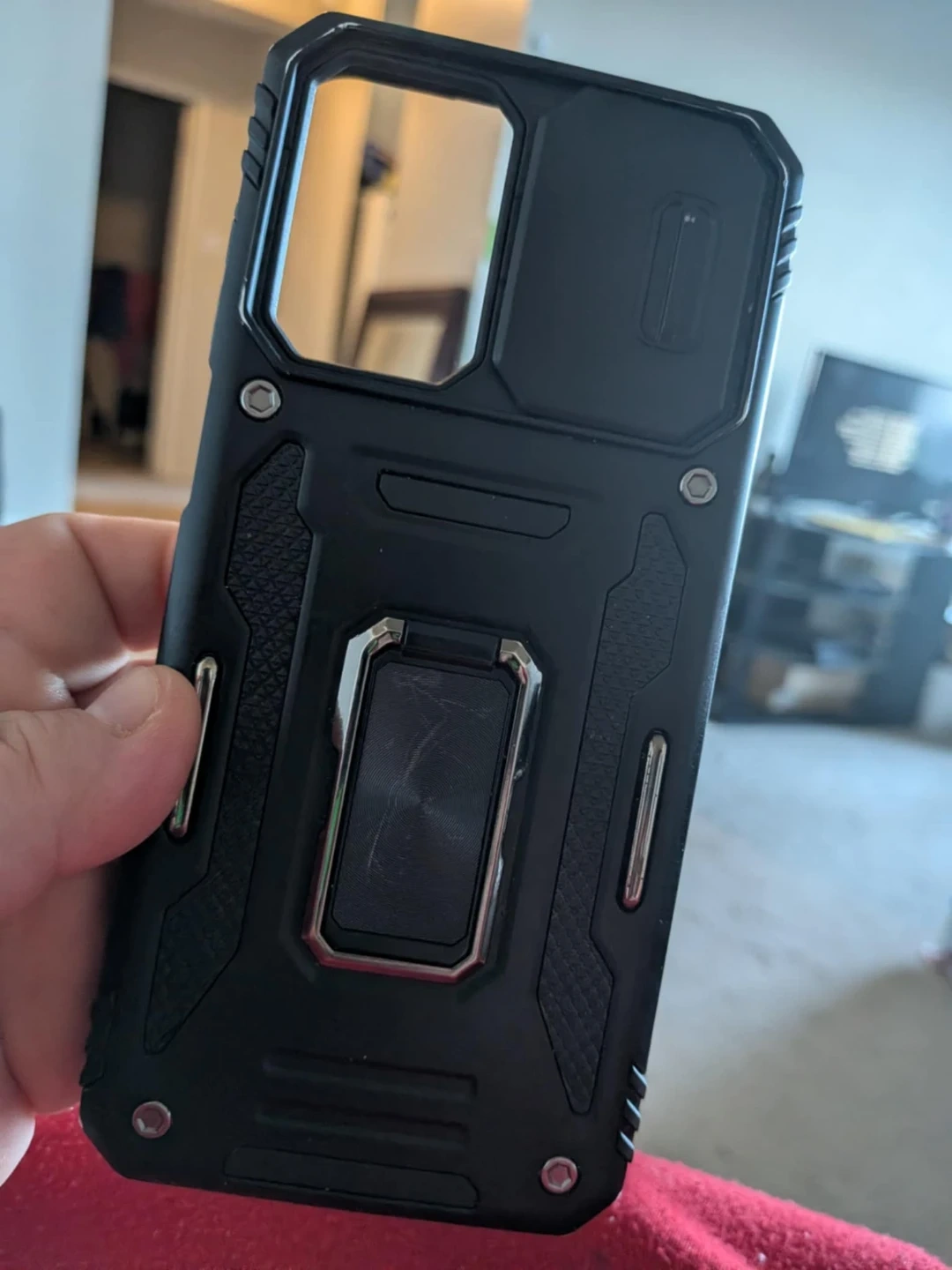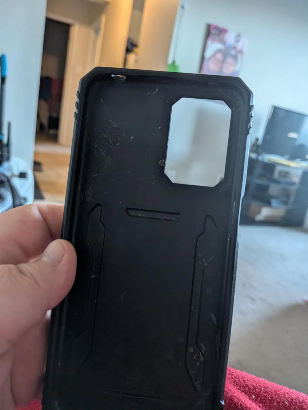 This is an AT&T branded smartphone, ready for setup. It comes with a rugged protective case featuring a kickstand. The phone appears to be a standard model, suitable for general use.