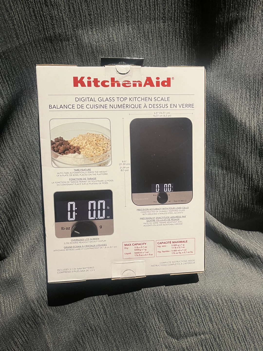 Firm!! Guaranteed the best price this item has brand new non-refurbished! This KitchenAid digital kitchen scale features a sleek glass top and an oversized LCD screen. It offers precision accuracy with four load cells and a tare feature to auto-tare and subtract the weight of containers. The innovative rotating knob sets units between grams, pounds, ounces, and more. It includes 3 x 1.5V AAA batteries.