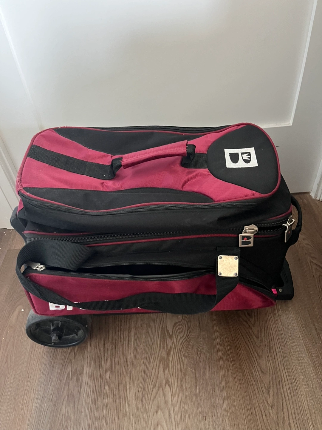 Selling a Brunswick bowling bag with wheels! It's in great shape and ready to roll. Perfect for carrying your bowling balls and accessories with ease. Two bowling balls are included.
