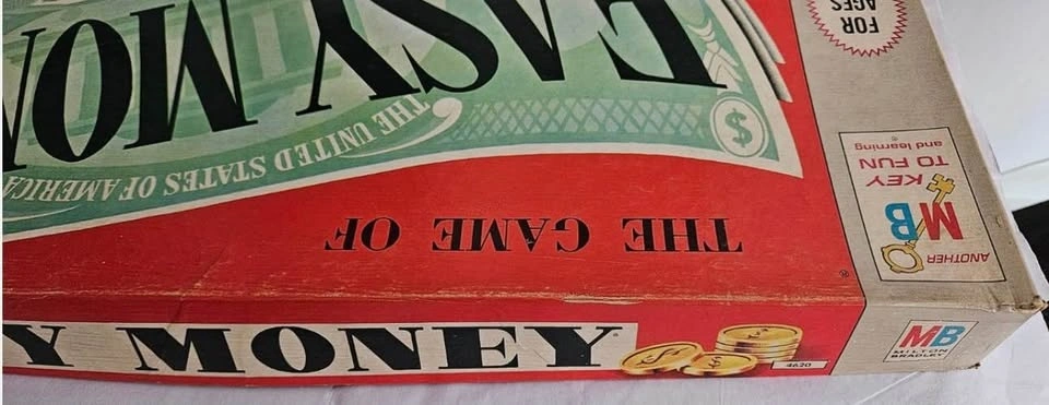 The Vintage 1956 Easy Money Board Game #4620 by Milton Bradley is a classic finance-themed board game designed for 2 players or more. With a age range of 8 and up, this game is perfect for teenagers and adults alike. Made in the United States, this 100% complete game is a fun and challenging way to test your luck and money management skills. The game's simple yet engaging gameplay makes it a timeless favorite for both boys and girls.