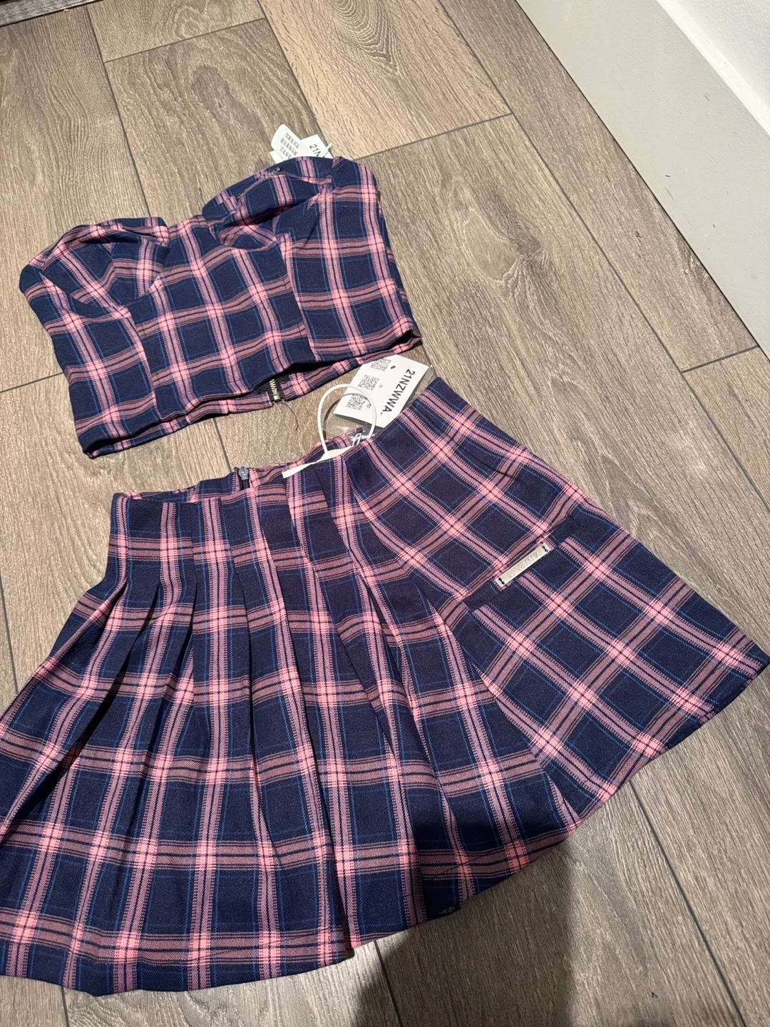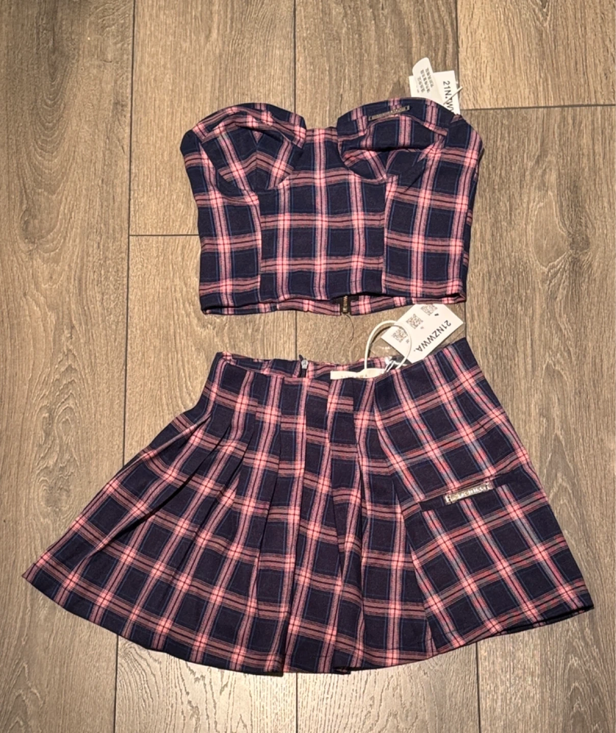 103This is a ZIZUWA matching skirt and top set! It features a cute plaid pattern. Perfect for a fun night out or a casual day.