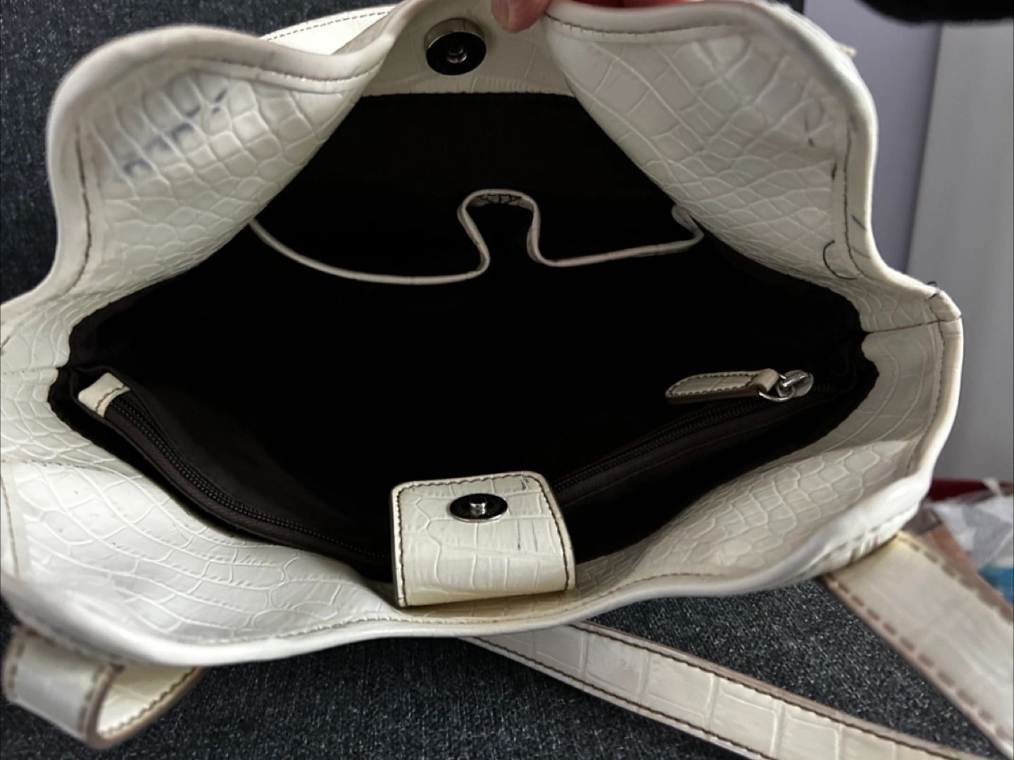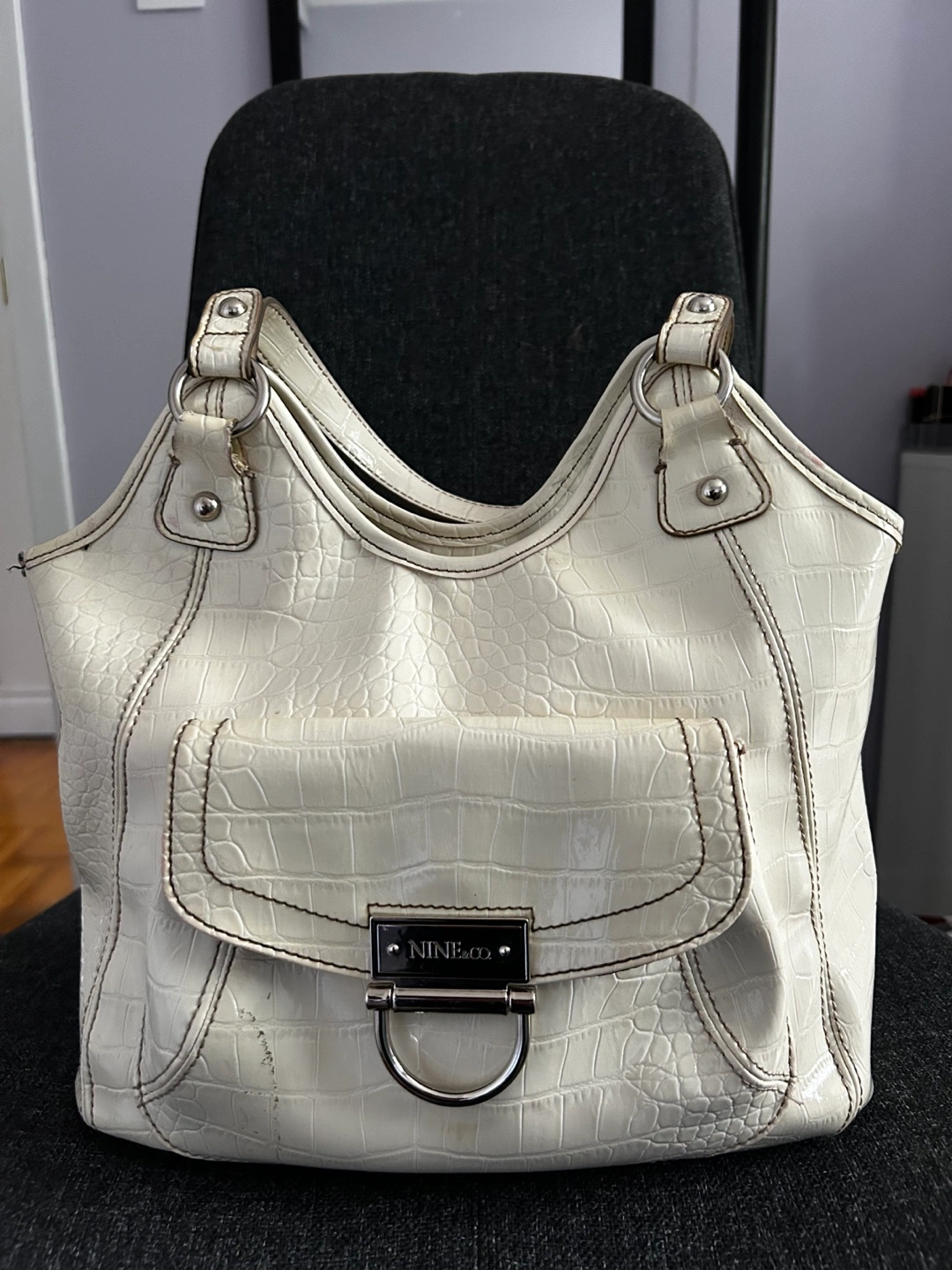 Nine & Co. White Croc Embossed Tote Bag