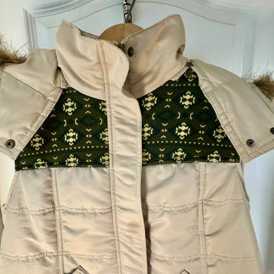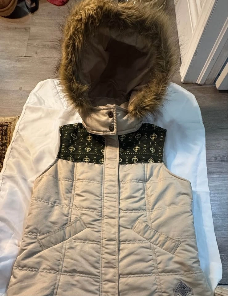 Channel timeless Canadian outdoor style with this rare vintage 1980s Beaver Canoe puffer vest—complete with its original attached hood. Featuring a classic beige nylon shell and signature forest green trim, this vest is lightweight yet warm, making it perfect for layering in cooler weather. Good vintage condition – no rips or stains; light wear consistent with age. A rare gem for lovers of retro Canadian brands, nostalgic Roots-style fashion, or functional vintage outerwear.