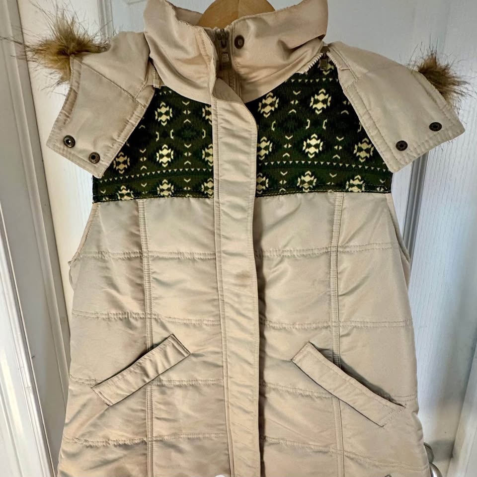 Channel timeless Canadian outdoor style with this rare vintage 1980s Beaver Canoe puffer vest—complete with its original attached hood. Featuring a classic beige nylon shell and signature forest green trim, this vest is lightweight yet warm, making it perfect for layering in cooler weather. Good vintage condition – no rips or stains; light wear consistent with age. A rare gem for lovers of retro Canadian brands, nostalgic Roots-style fashion, or functional vintage outerwear.
