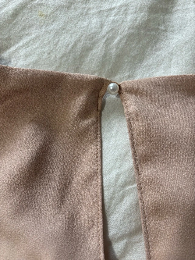 Zipper in the back and pearl detail.