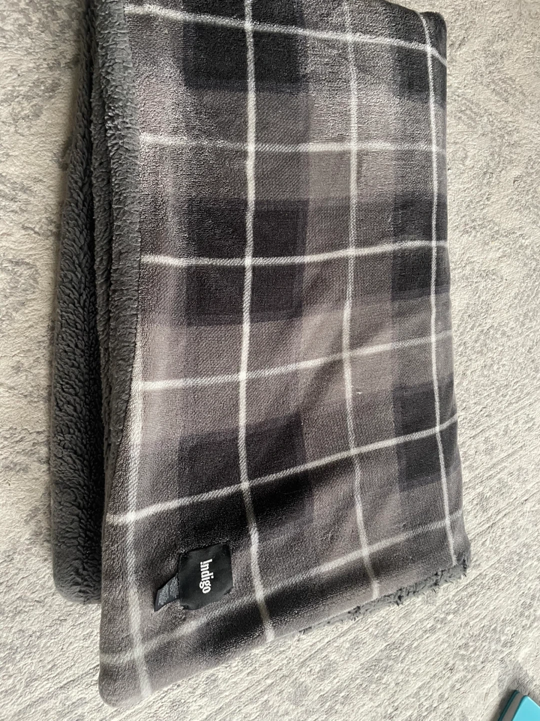 Indigo Plaid Sherpa Throw Blanket