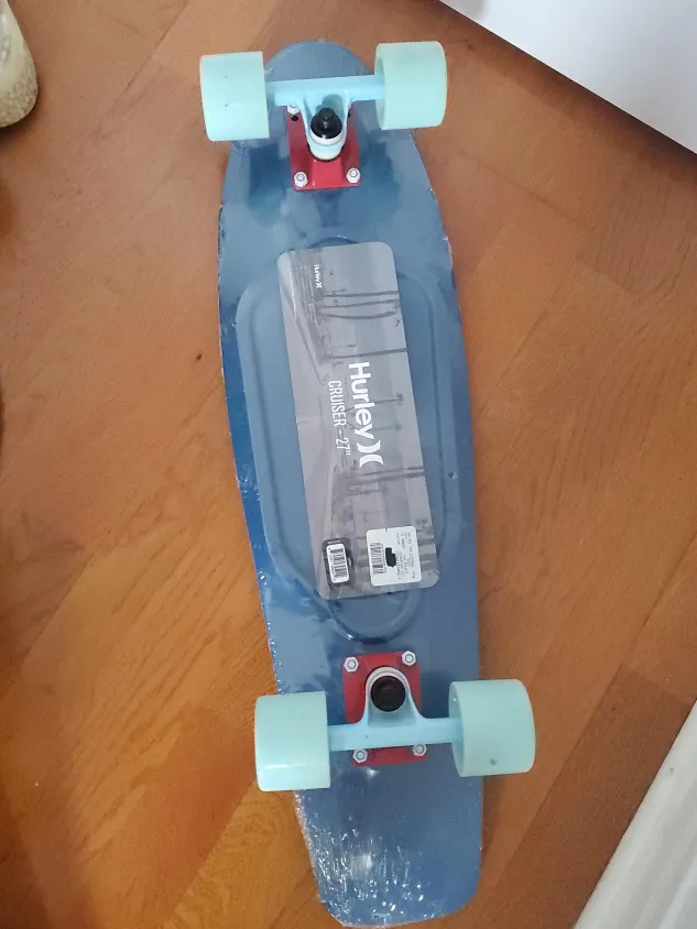 Selling a brand new Hurley Cruiser 27" skateboard! It's still in the original packaging. The skateboard features a blue deck with light blue wheels. Great for cruising around town!