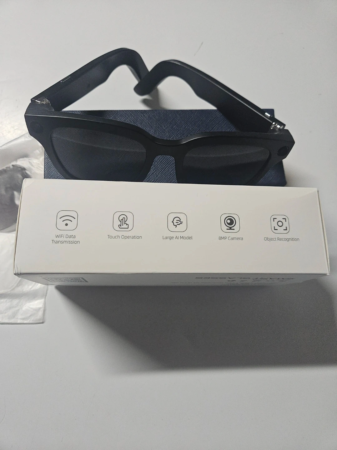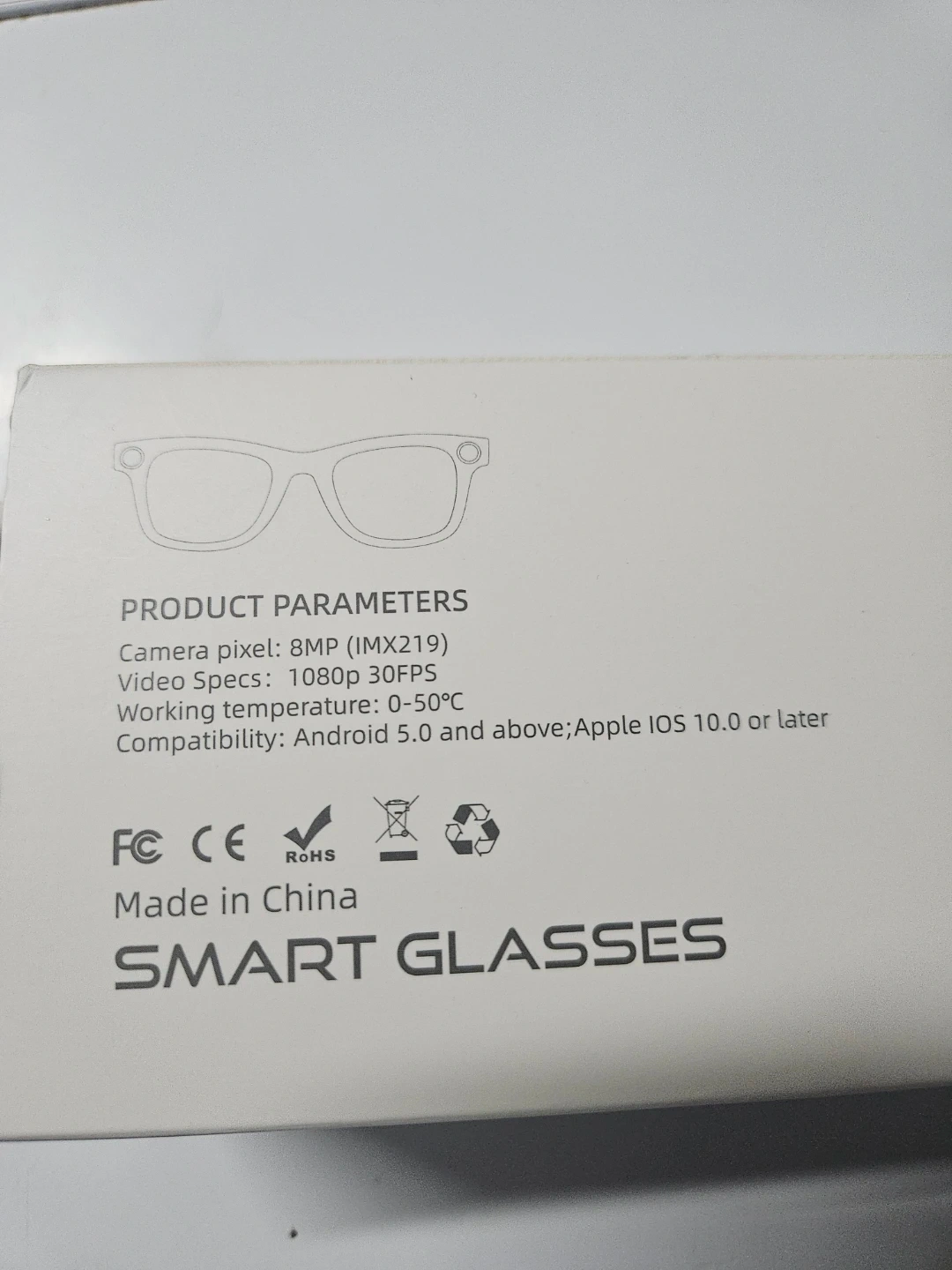 These smart glasses feature a built-in 8MP camera with 1080p 30FPS video capabilities. They offer touch operation and WiFi data transmission. Compatibility includes Android 5.0 and above, and Apple iOS 10.0 or later.