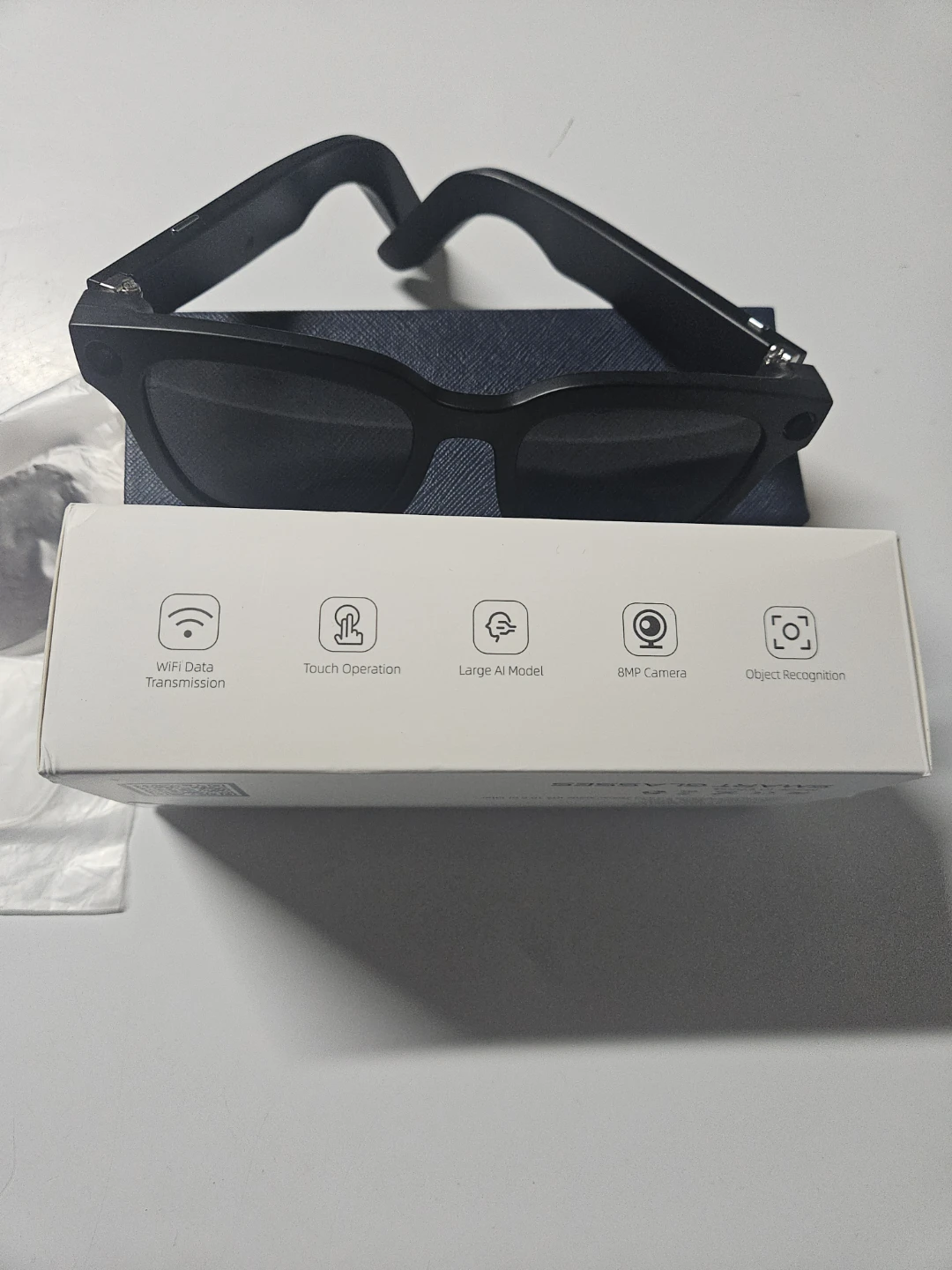 These smart glasses feature a built-in 8MP camera with 1080p 30FPS video capabilities. They offer touch operation and WiFi data transmission. Compatibility includes Android 5.0 and above, and Apple iOS 10.0 or later.