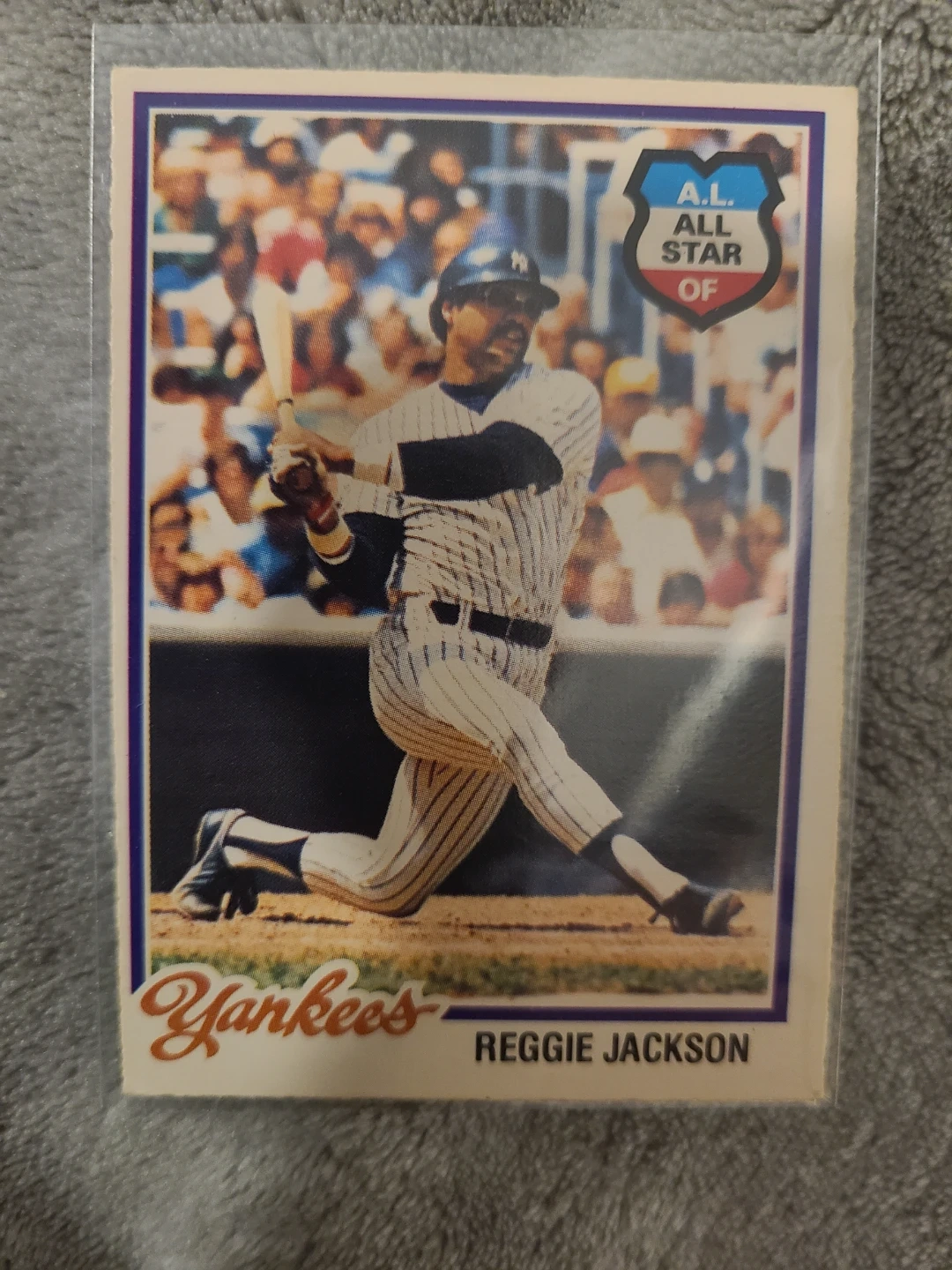 This is a 1978 Topps baseball card featuring Reggie Jackson. It's part of the "A.L. All Star" series. The card includes his career batting record. It's a collectible for any baseball fan!