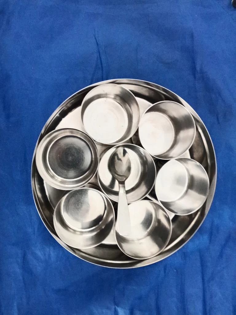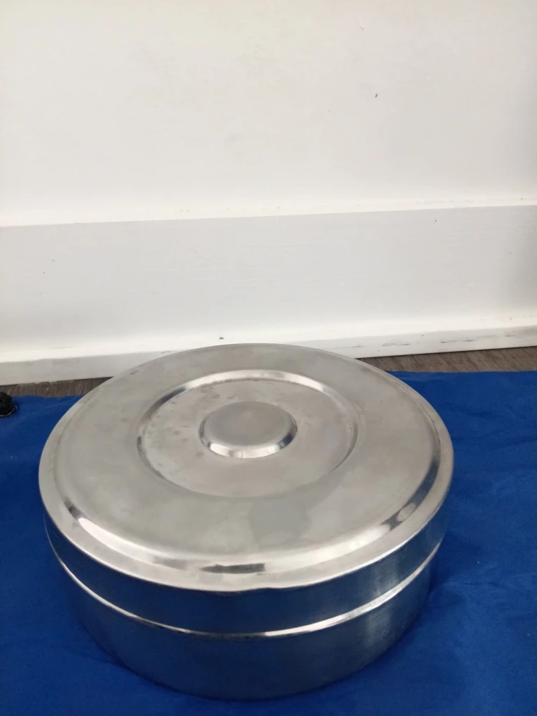 Selling a stainless steel spice box. It's perfect for storing your spices and keeping them fresh. The set includes the main container, seven individual bowls, a small spoon, and a lid to keep everything sealed tight.