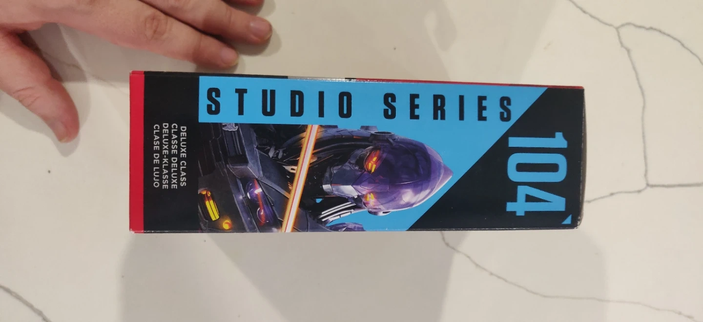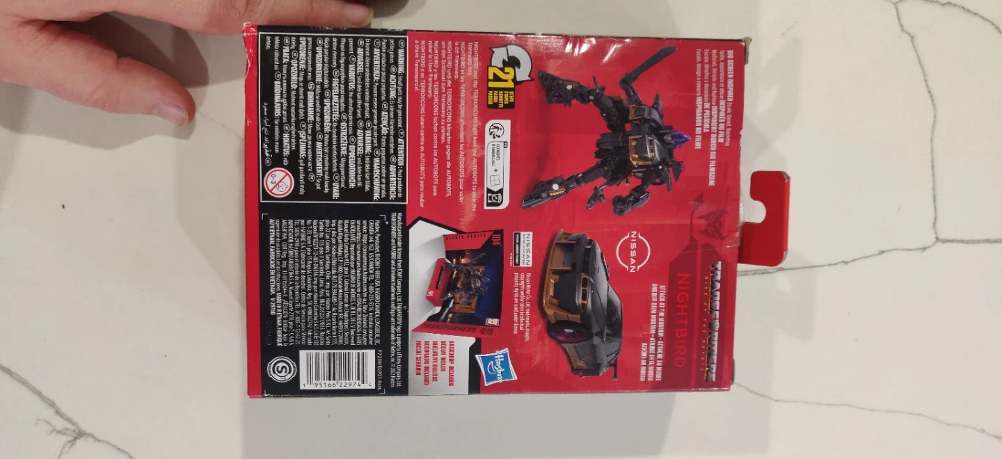 This is the Transformers Studio Series Deluxe Class Nightbird figure, number 104. It's suitable for ages 8 and up. The packaging includes the original box.