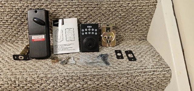 Amazonbasics Electronic Keypad Deadbolt Door Lockset with keys. Oil rubbed Bronze colour. Located in Port Union and Lawrence Ave East area of Scarborough. Used - Good condition.