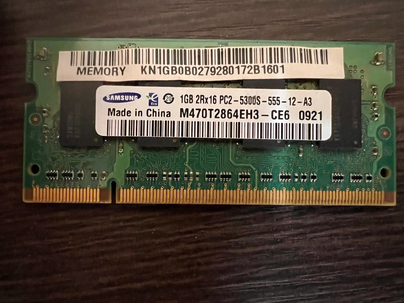 One RAM is Samsung 1GB DDR2 x16 PC2-5300S-555-12-A3 667MHz RAM