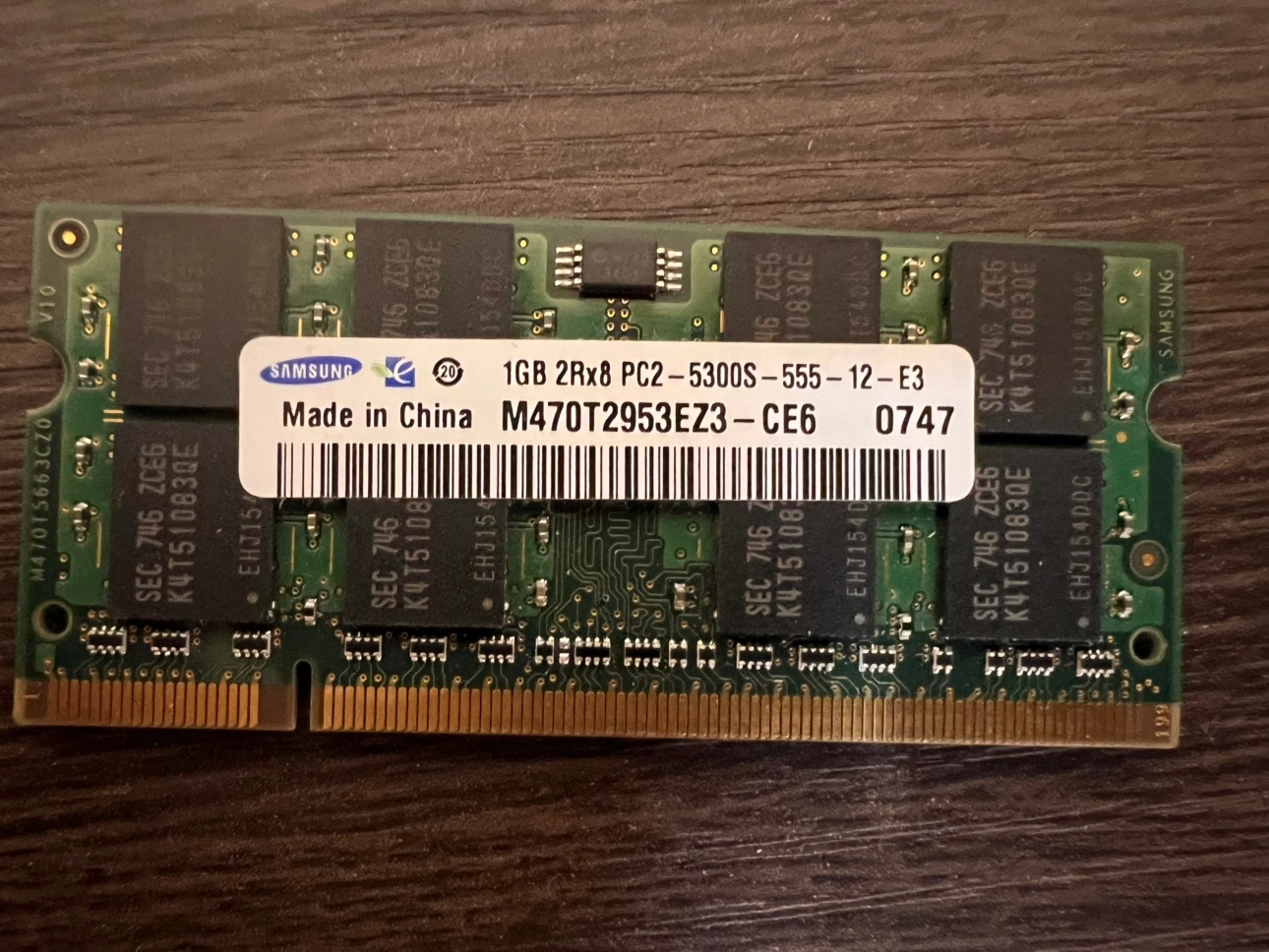 Second RAM is Samsung 1GB DDR2 x8 PC2-5300S-555-12-E3 667MHz RAM