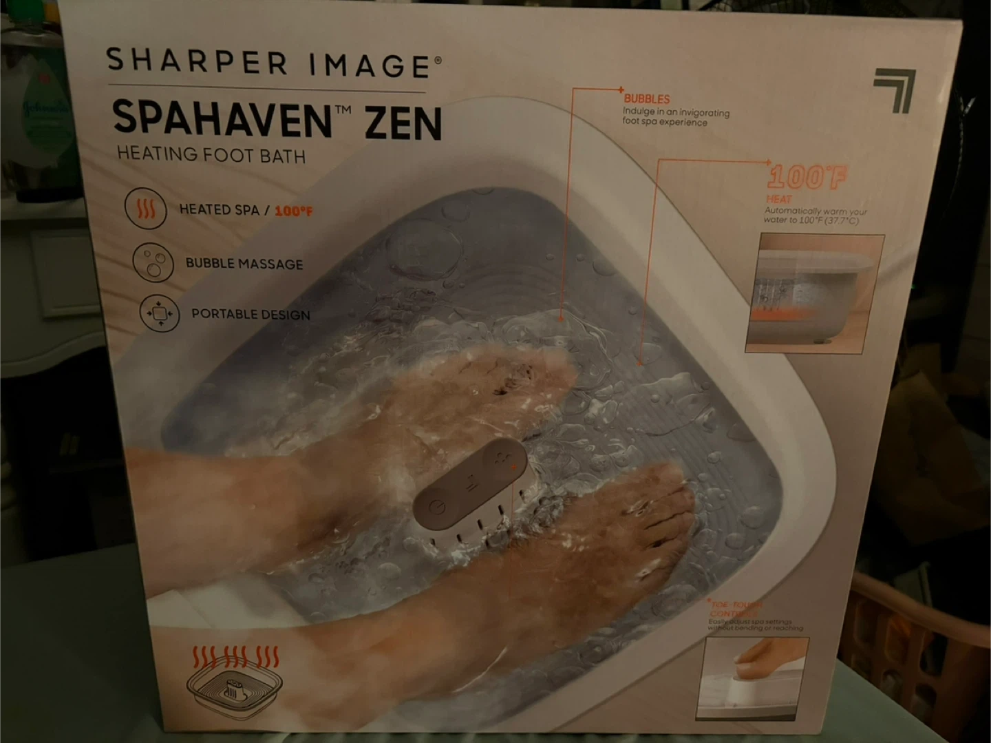 This Sharper Image Spahaven Zen foot bath offers heated spa and bubble massage for an invigorating foot spa experience. It automatically warms water to 100°F and features a portable design. Toe-touch controls make it easy to adjust spa settings without bending or reaching.