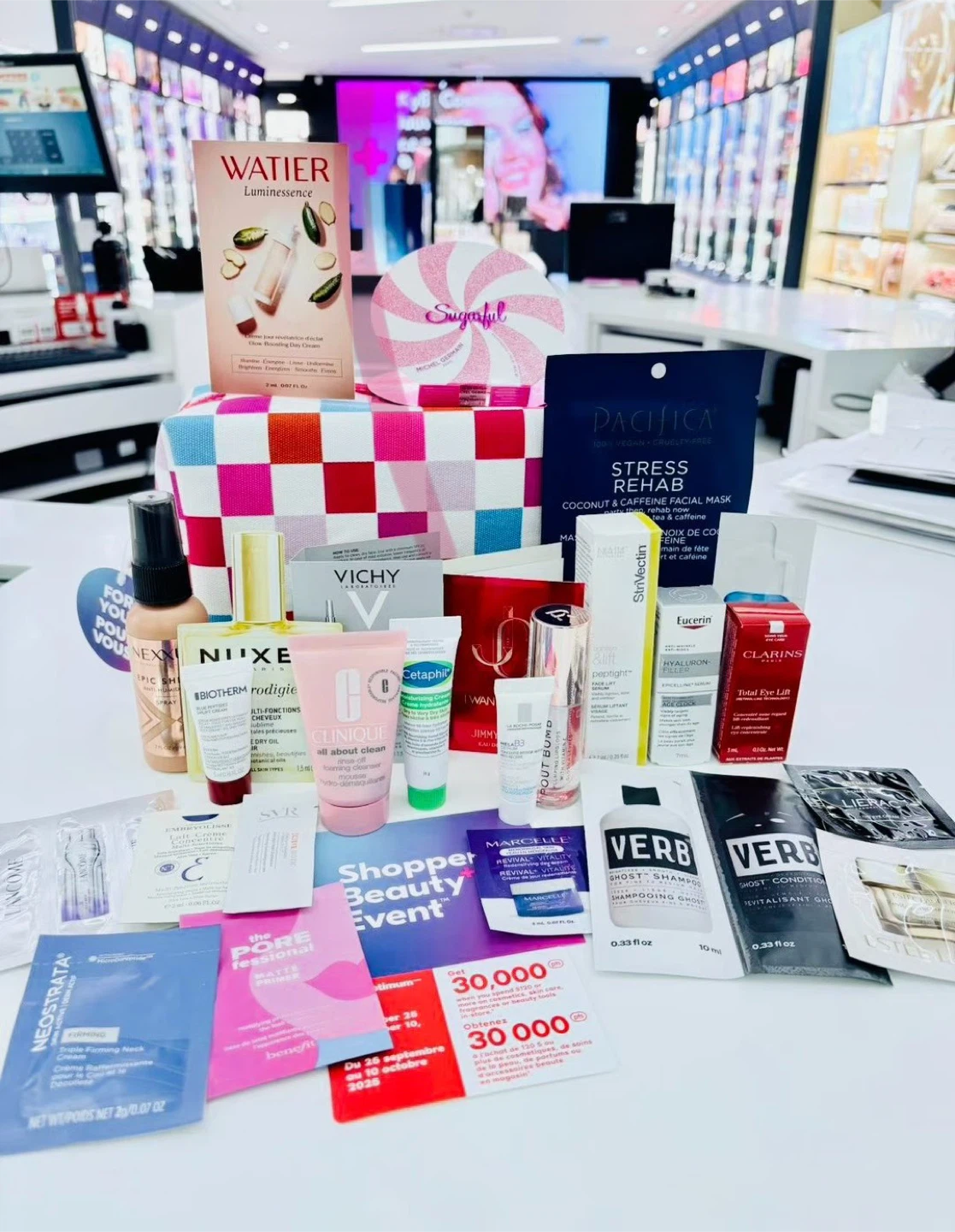 A collection of skincare and beauty samples and products from brands like Watier, Nuxe, Vichy, Clinique, Pacifica, and more! Great way to try out new items or stock up on travel sizes, price is firm .