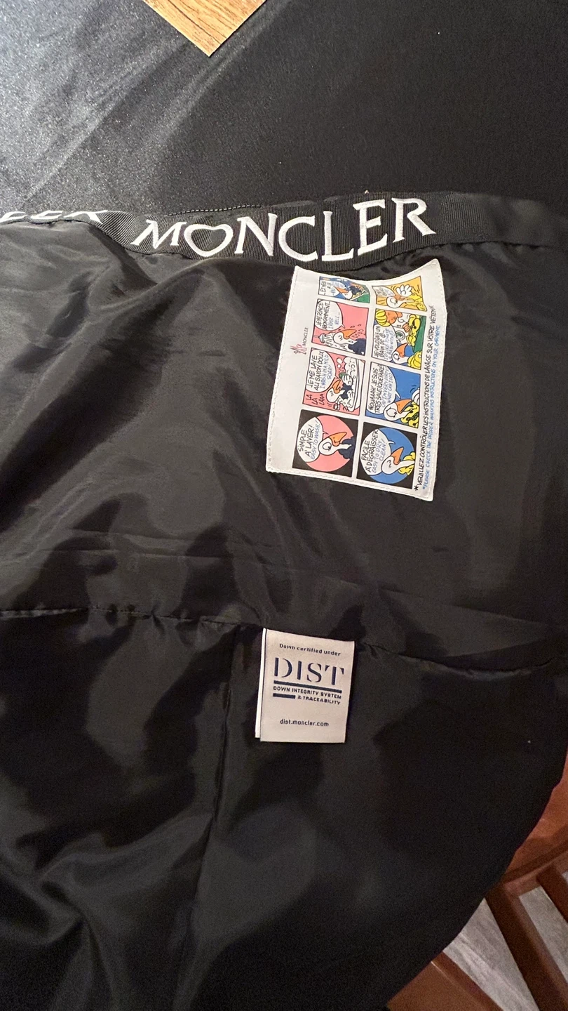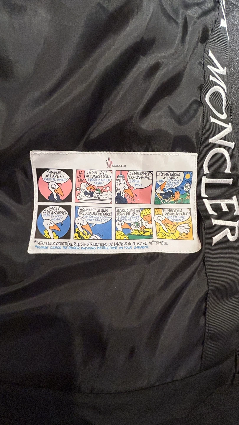 Black Moncler men’s puffer jacket. It's a stylish and warm outerwear piece for cooler weather. The jacket is made with quality materials. It's a great choice for everyday wear.