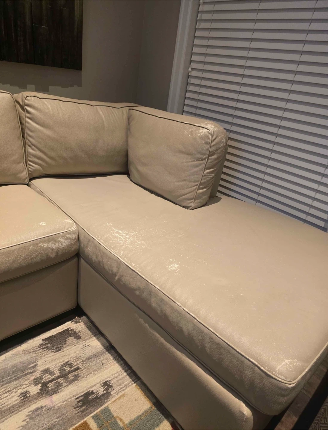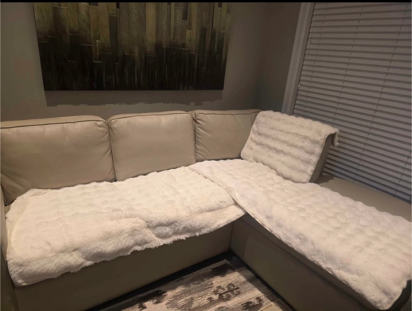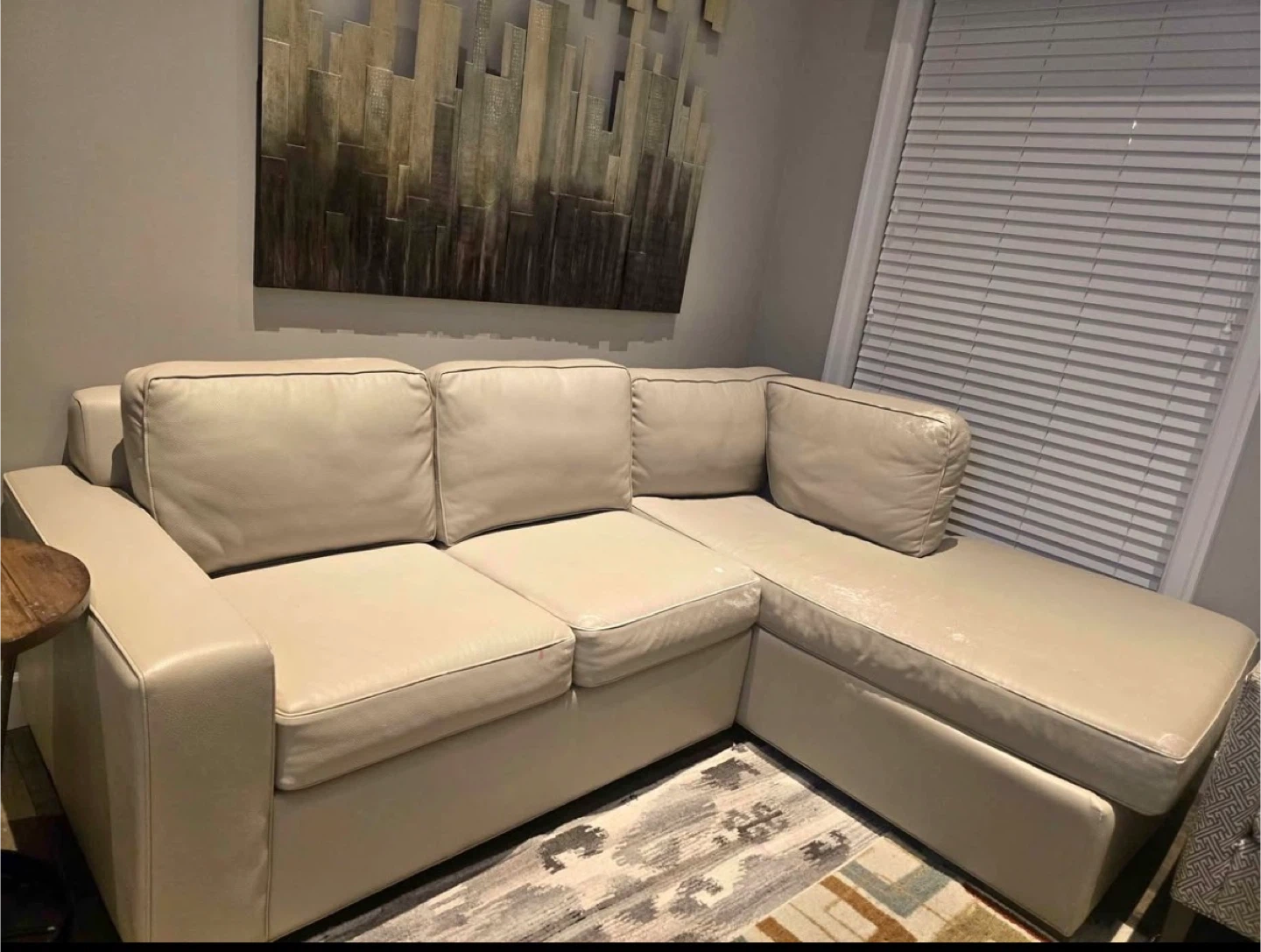 • L-shaped sectional• Comfortable cushions• Neutral beige color (matches any decor)• Smoke-free and pet free home