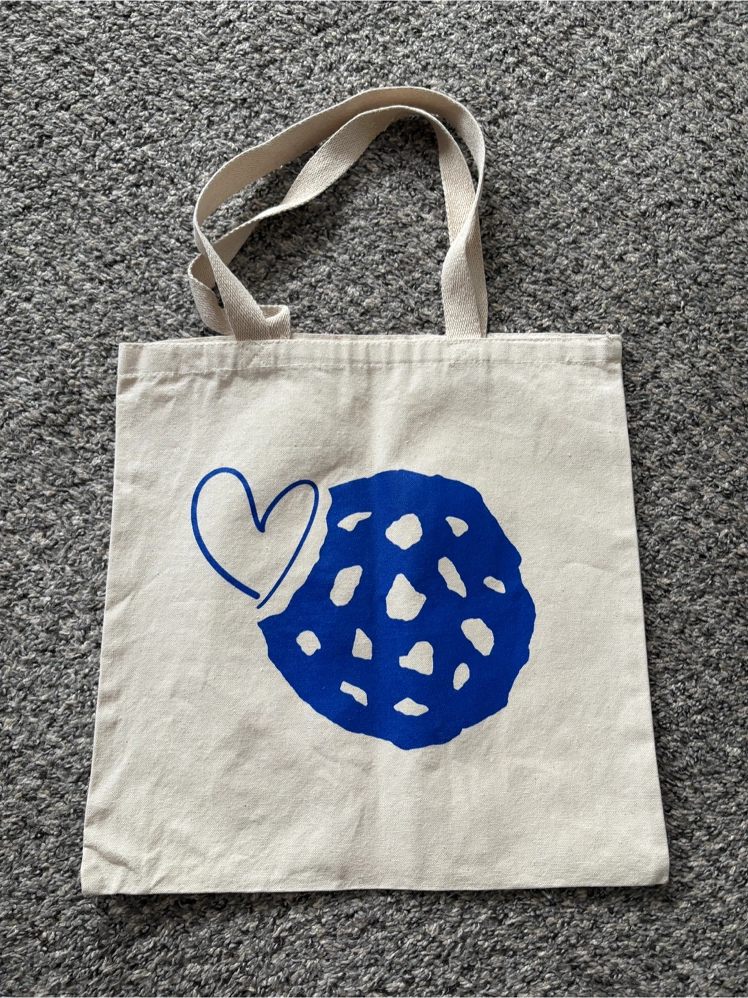 Standard size canvas tote celebrating Levain Bakery’s 30th Anniversary in NYC. Natural color canvas with blue screen printed cookie logo on front and company name and date on back.