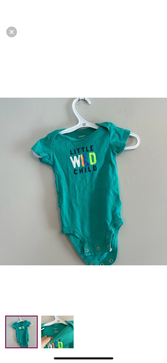 Carters brand. Short sleeve onesie. Green with wild graphic. Size 6m. Brand new condition