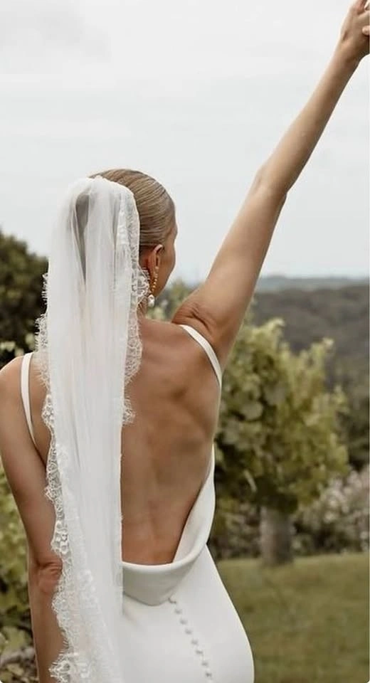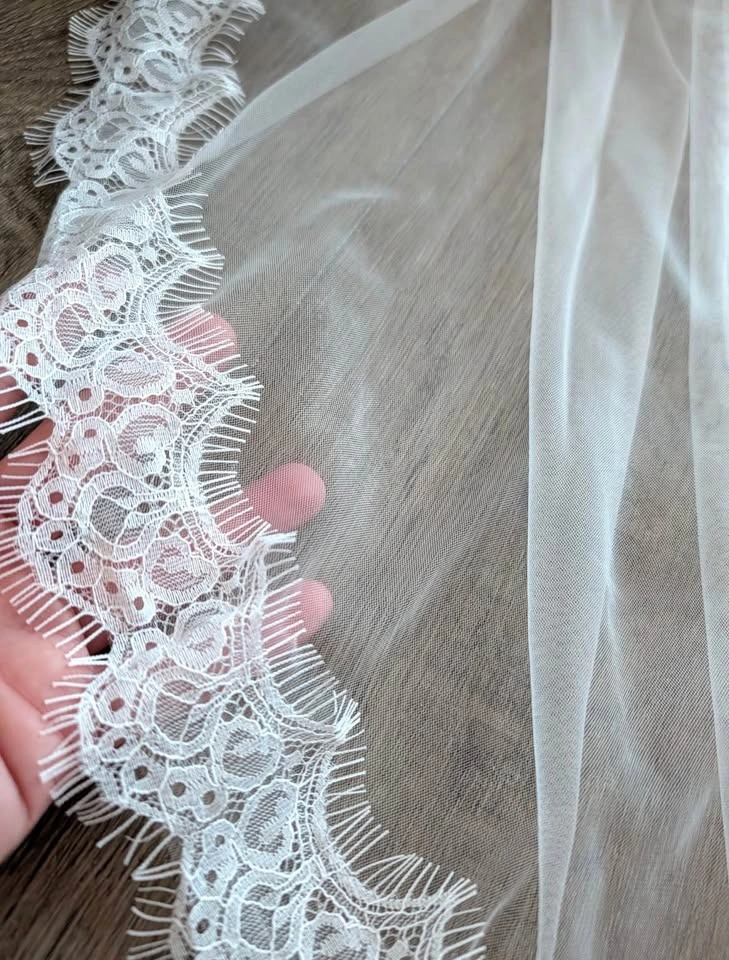 Lace Trim Fingertip Veil - Soft White or Ivory