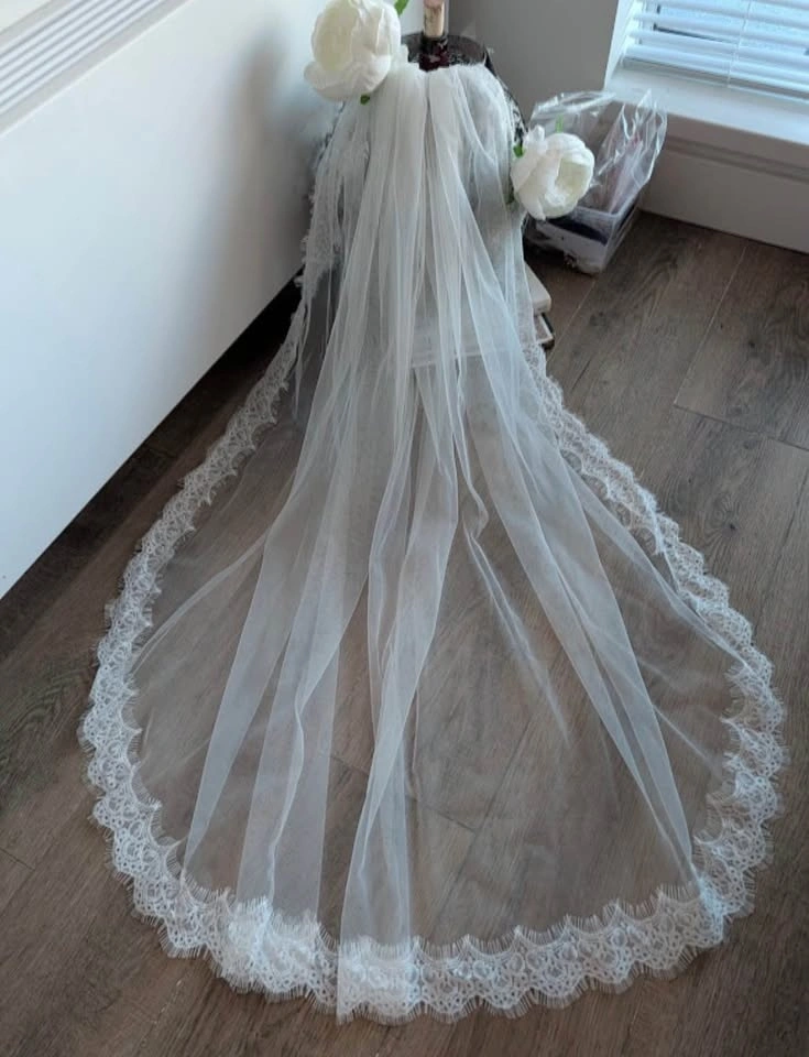 Soft, white and ivory available (new). Comb sewn in. Fingertip length 100cm. Please respect pricing. God bless! 🙂