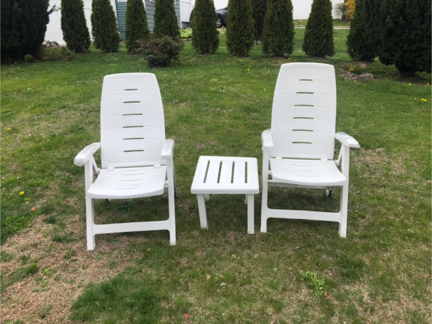 "Gracious Living" 3-piece folding Adirondack chair set in white.