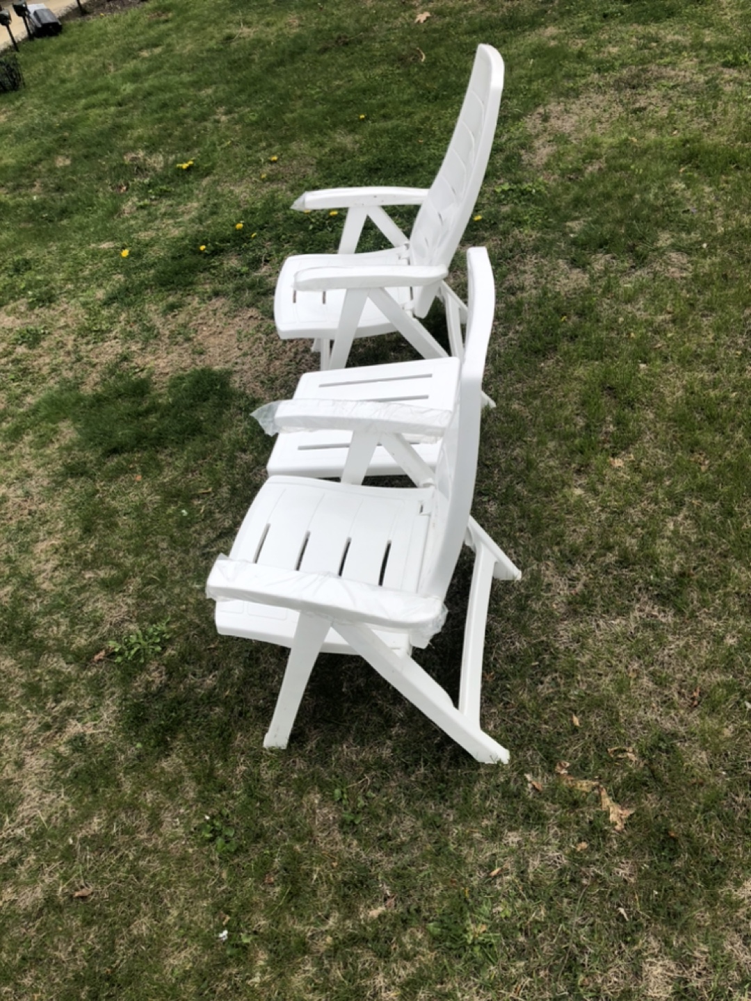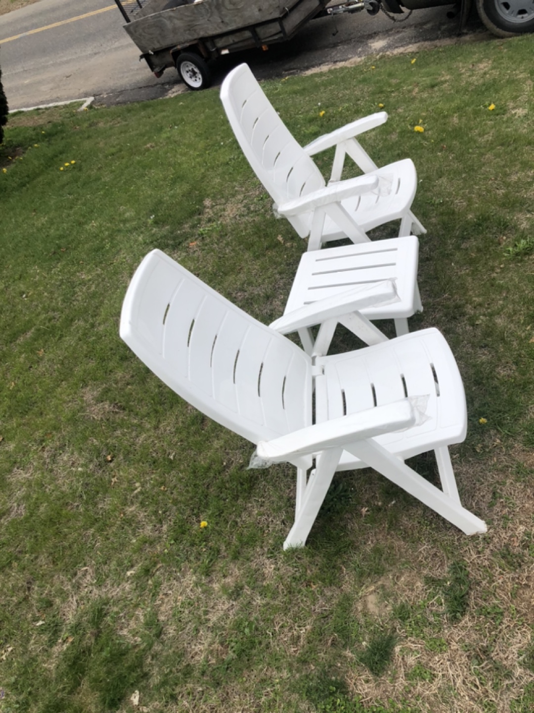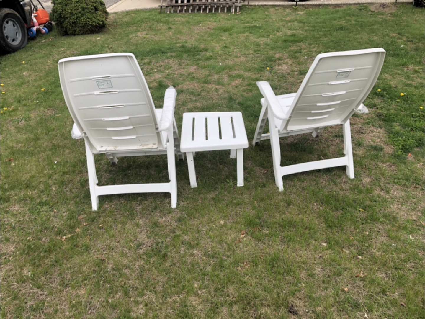 "Gracious Living" 3-piece folding Adirondack chair set in white.