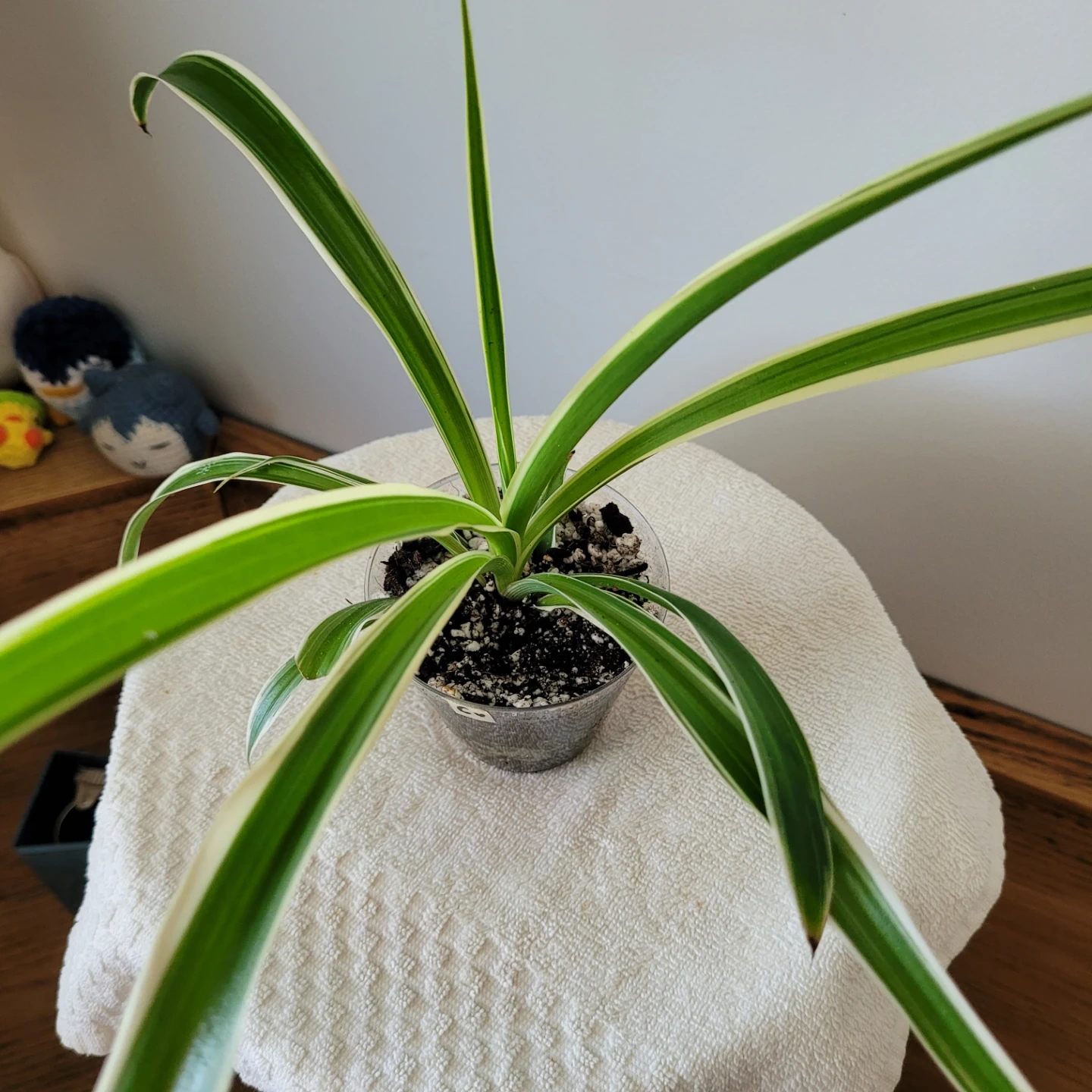 Well rooted spider plants that have been acclimated in my potting mix! Likes sunlight but will do ok in the washroom because of the humidity. I keep on my window bay and in washroom.