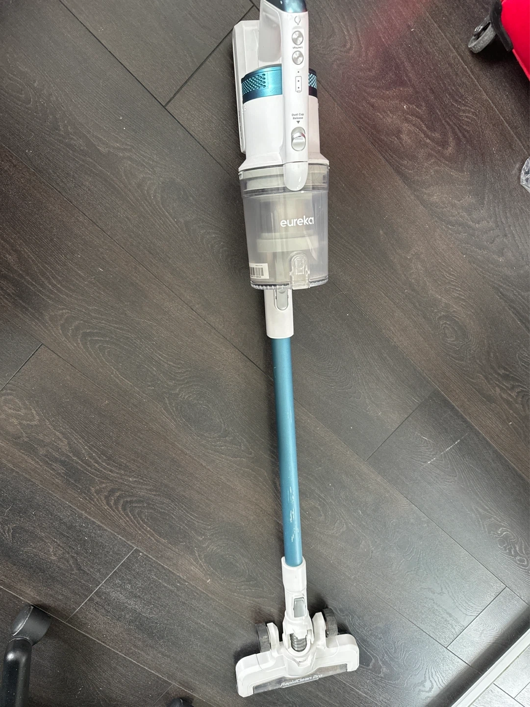 Eureka RapidClean Pro cordless stick vacuum. It's lightweight and easy to manoeuvre. Includes dustbin release button for quick emptying. It’s used but works great even now. Pick up only. Very good for households that have pets too.
