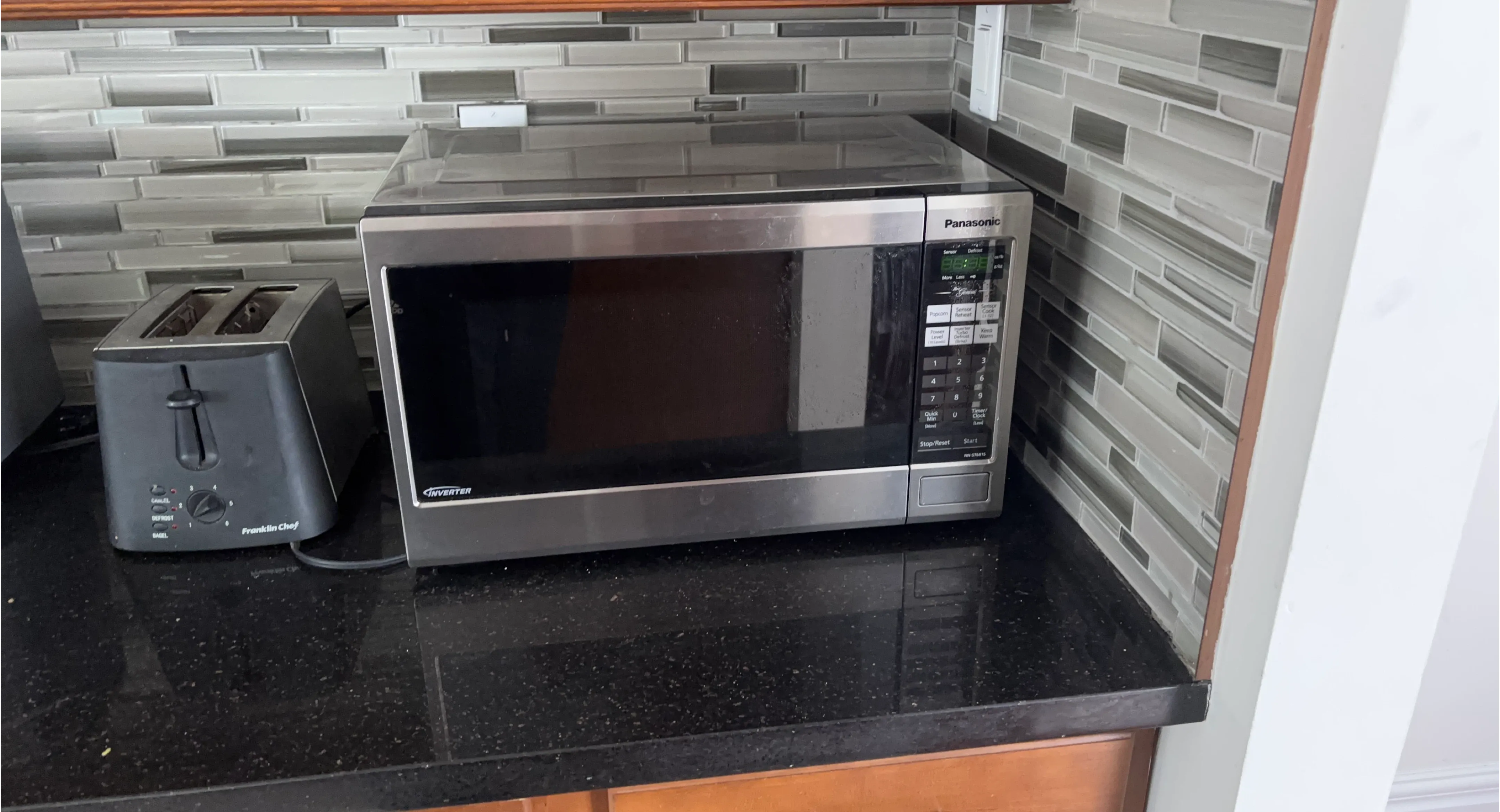 Panasonic Inverter microwave oven. Model NN-ST6815. Features include popcorn, sensor reheat, and quick cook functions.