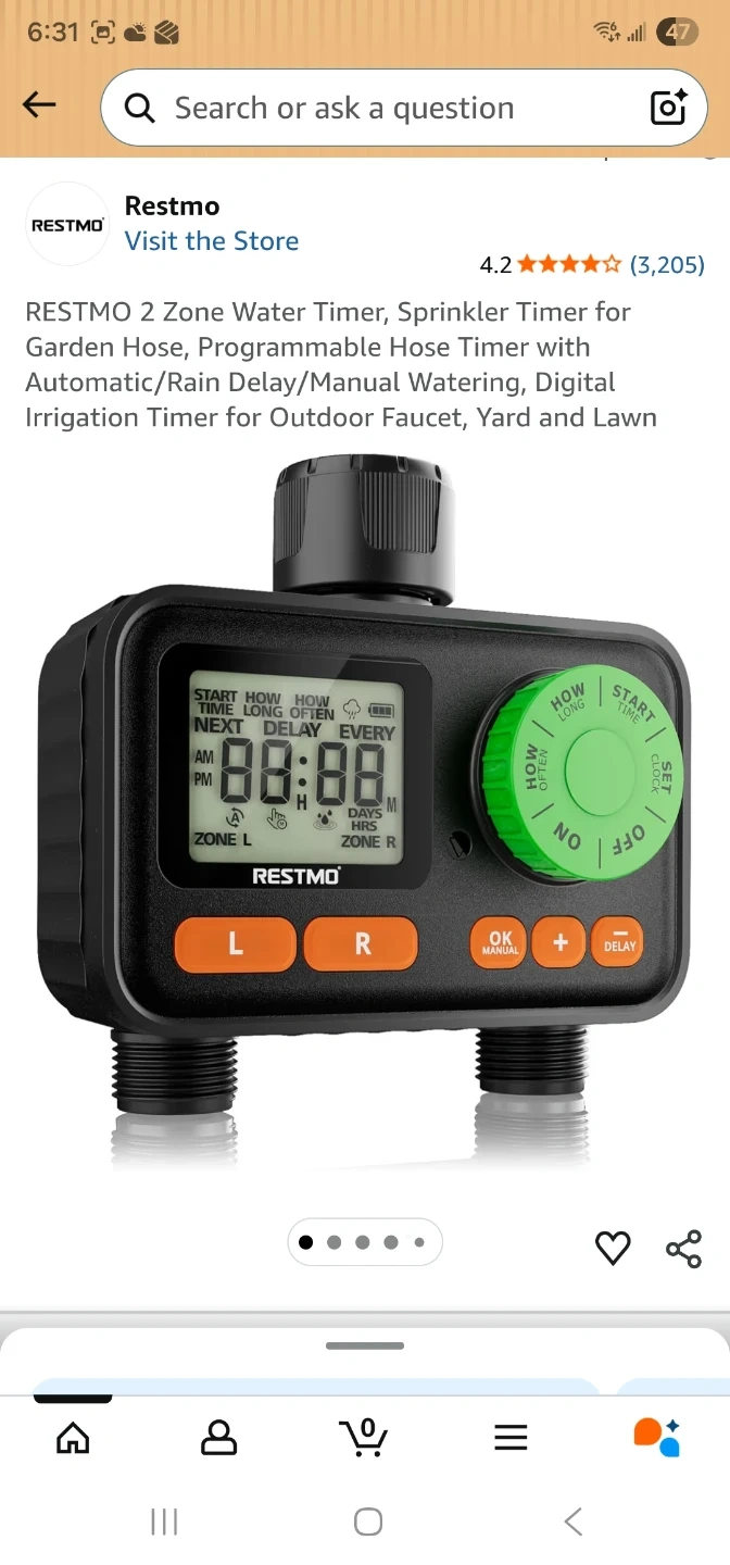 This is a RESTMO 2 zone water timer for garden hoses. It's programmable for automatic or manual watering. The timer has an IP55 waterproof battery compartment and a built-in metal filter. No box.