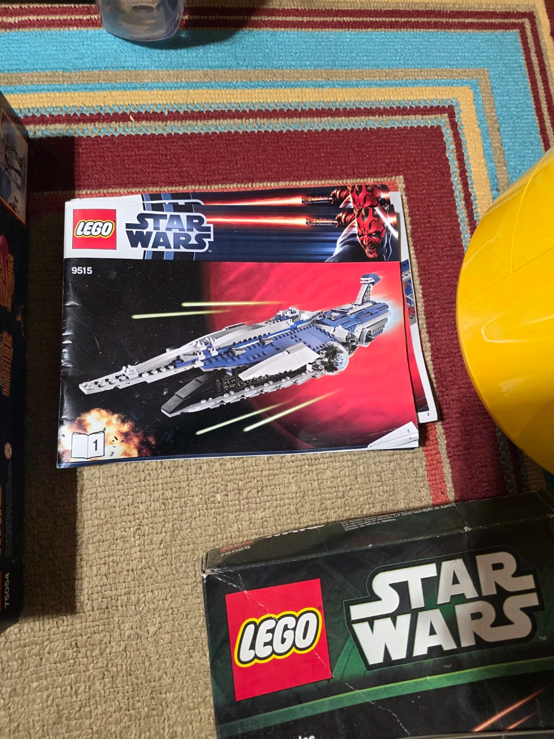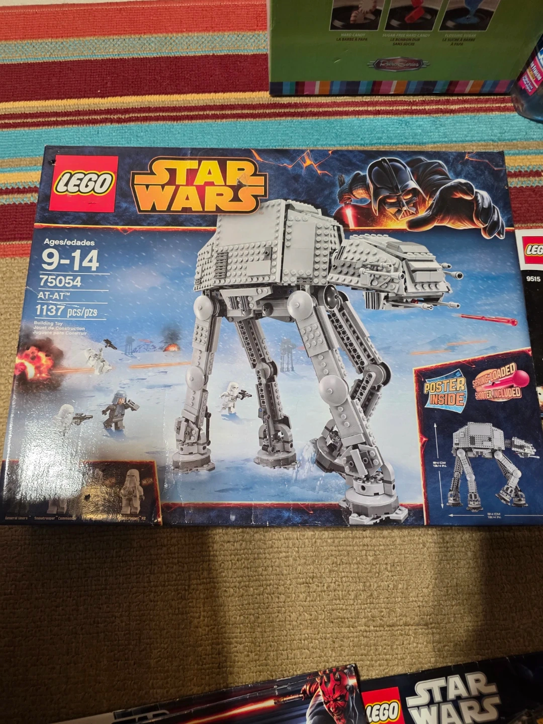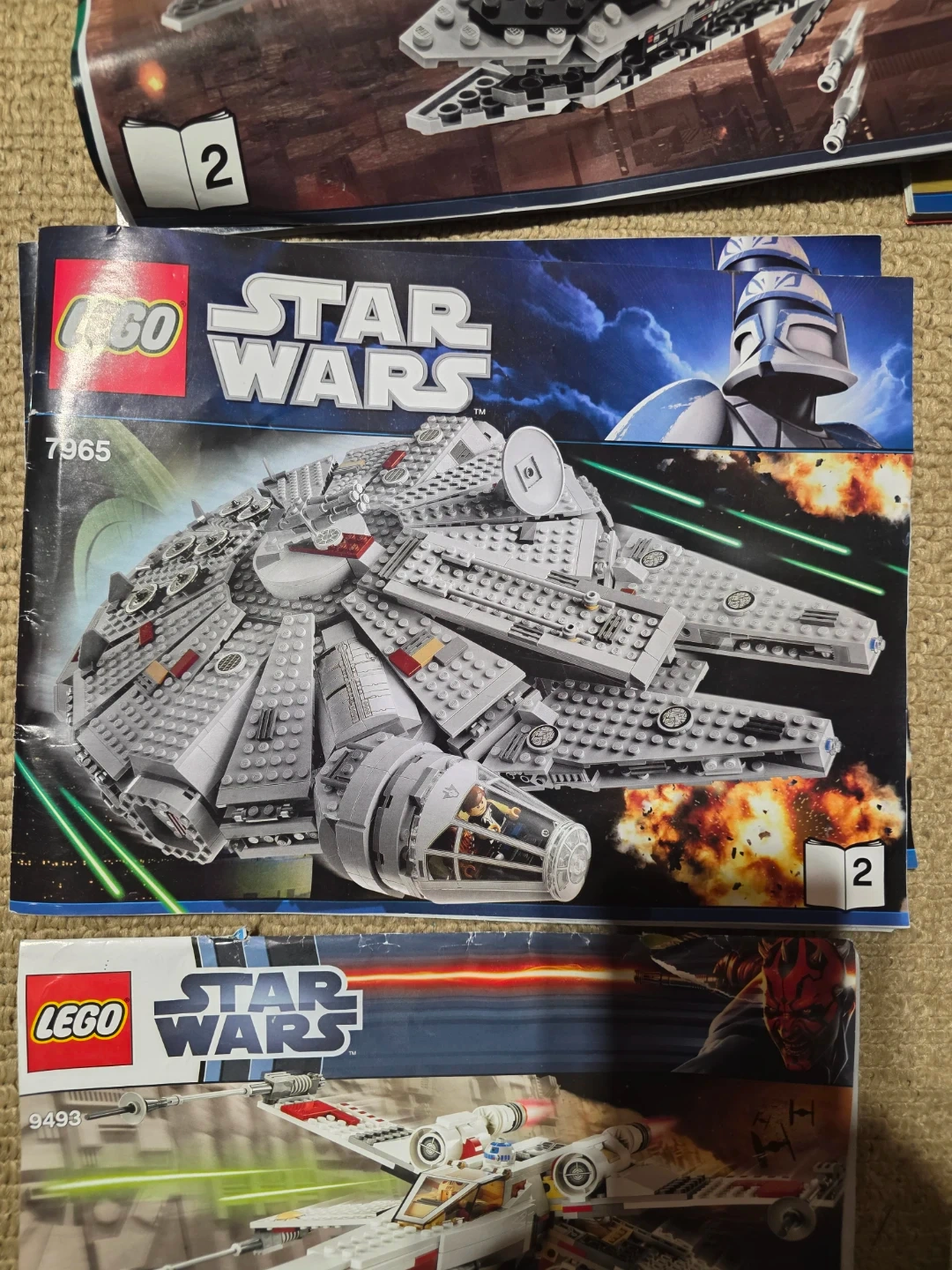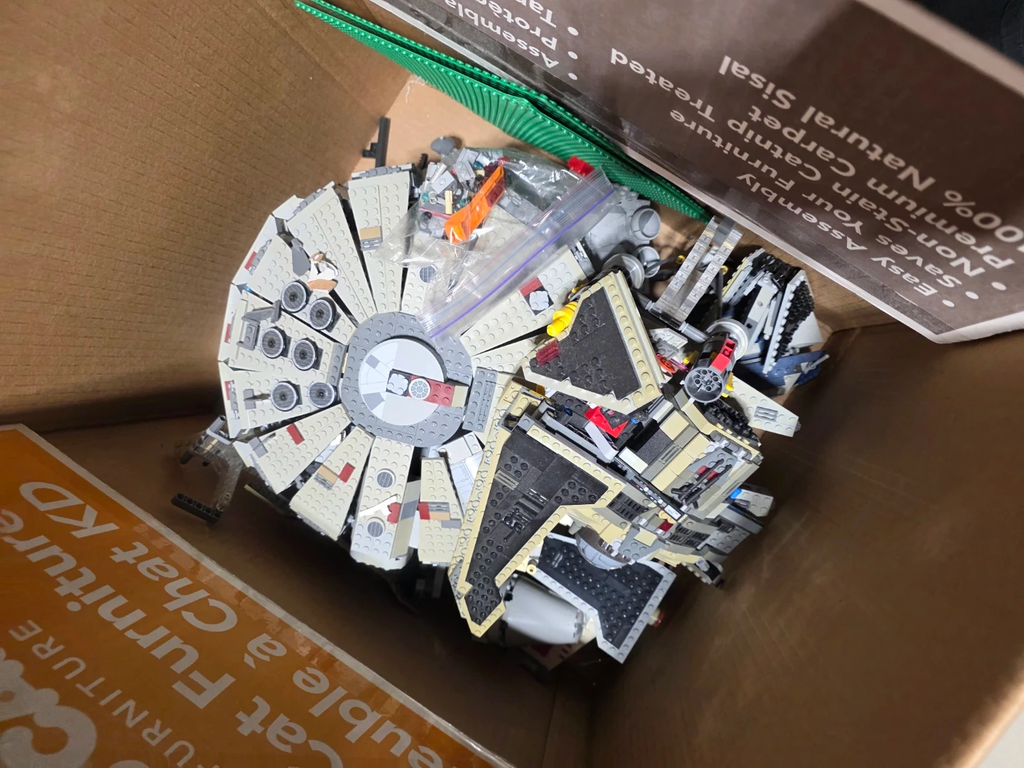 This is a LEGO Star Wars Lego sets, brand new unopened AT-AT, Jedi Defender-class Cruiser set, previously assembled Millennium Falcon, previously assembled X-Wing Fighter, plus other builds. There's also a large collection of loose LEGO bricks in a yellow storage head container. All Lego pieces included to refinish builds, you will have to locate pieces. AT-AT valued at $200+ on its own. Best offer takes all.