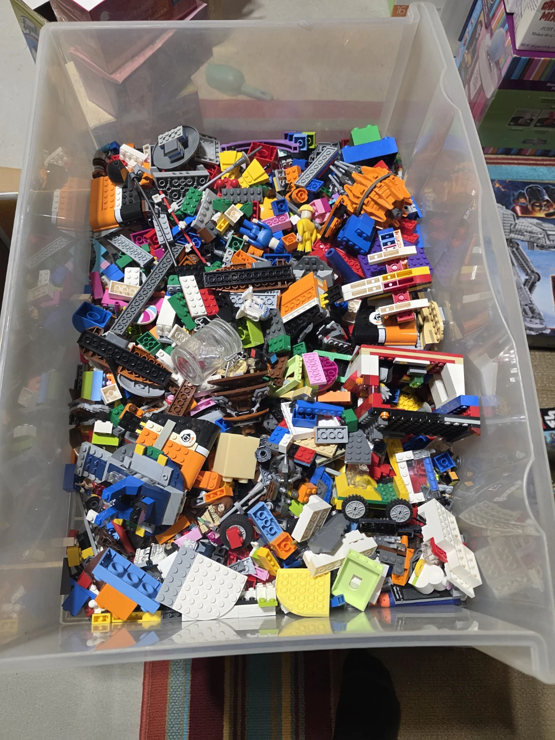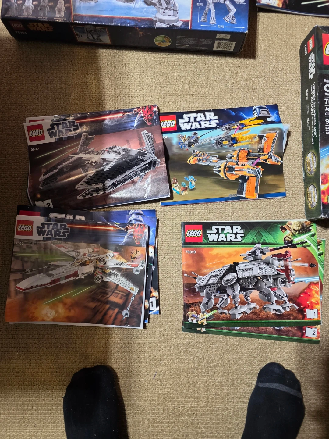 This is a LEGO Star Wars Lego sets, brand new unopened AT-AT, Jedi Defender-class Cruiser set, previously assembled Millennium Falcon, previously assembled X-Wing Fighter, plus other builds. There's also a large collection of loose LEGO bricks in a yellow storage head container. All Lego pieces included to refinish builds, you will have to locate pieces. AT-AT valued at $200+ on its own. Best offer takes all.