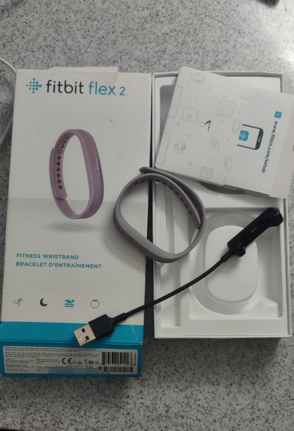 This is a Fitbit Flex 2 fitness wristband in a light purple colour. Selling wristband & charging cable.