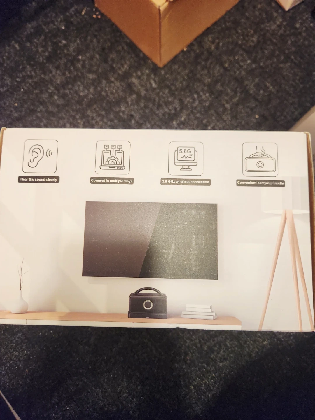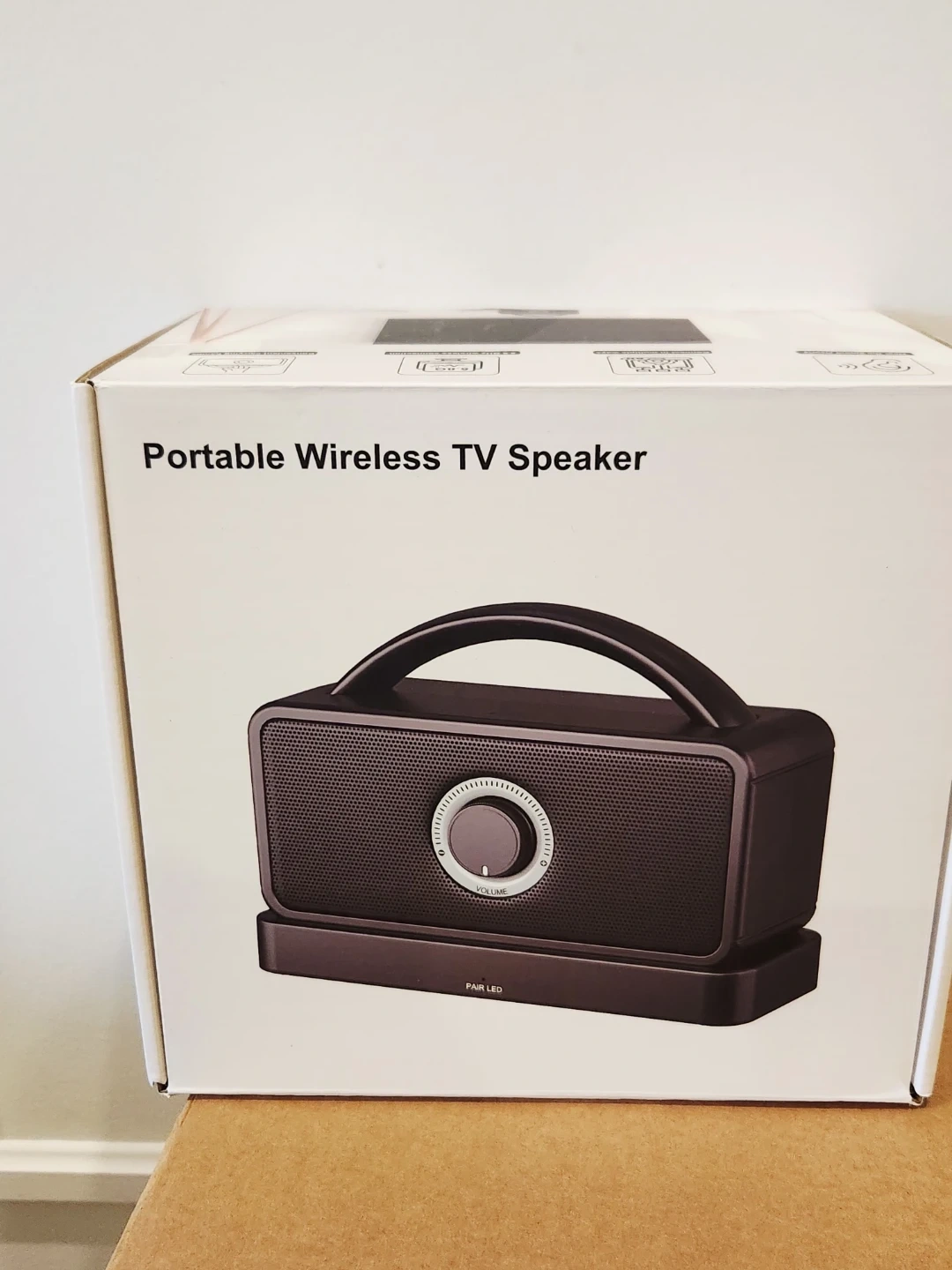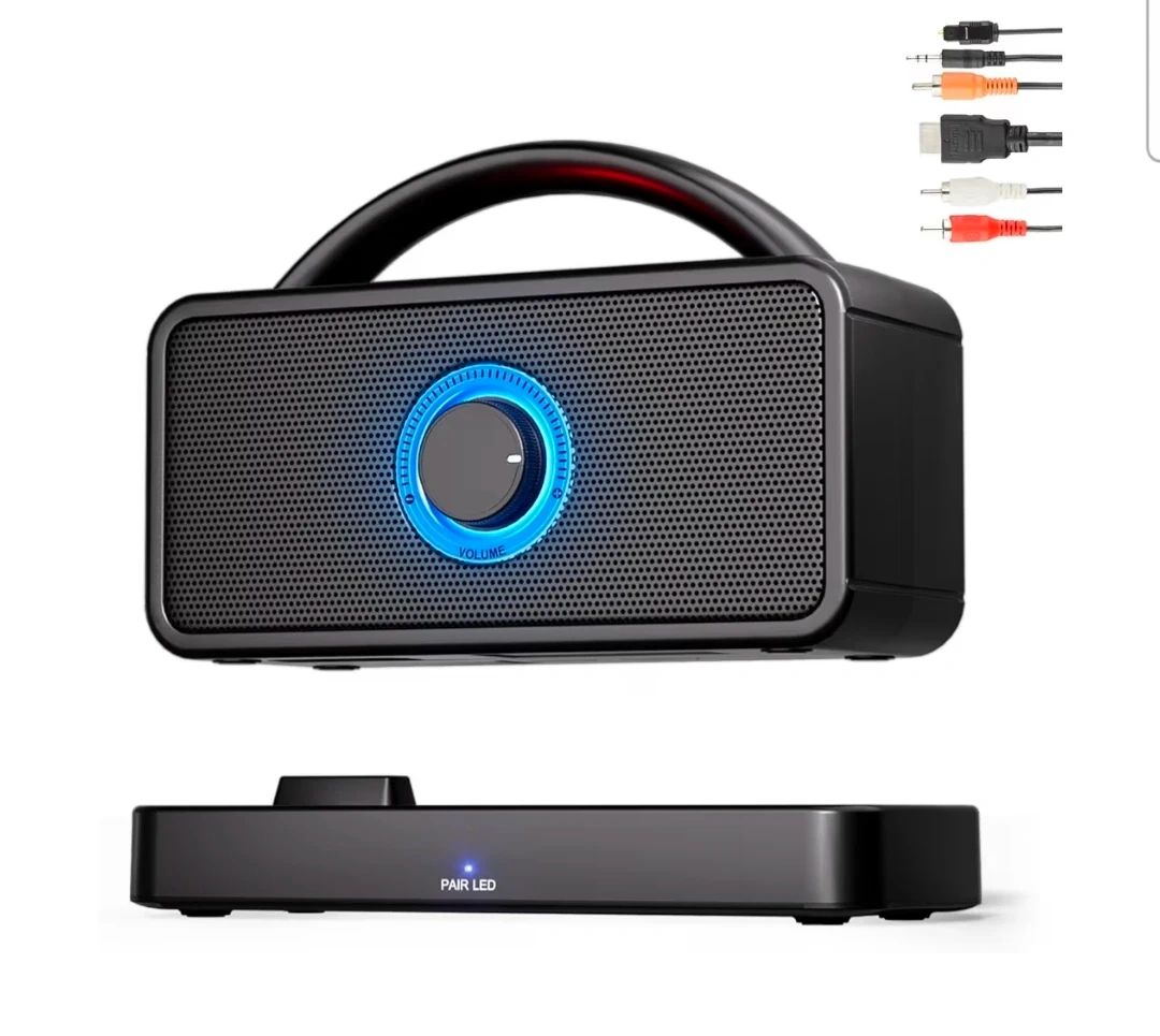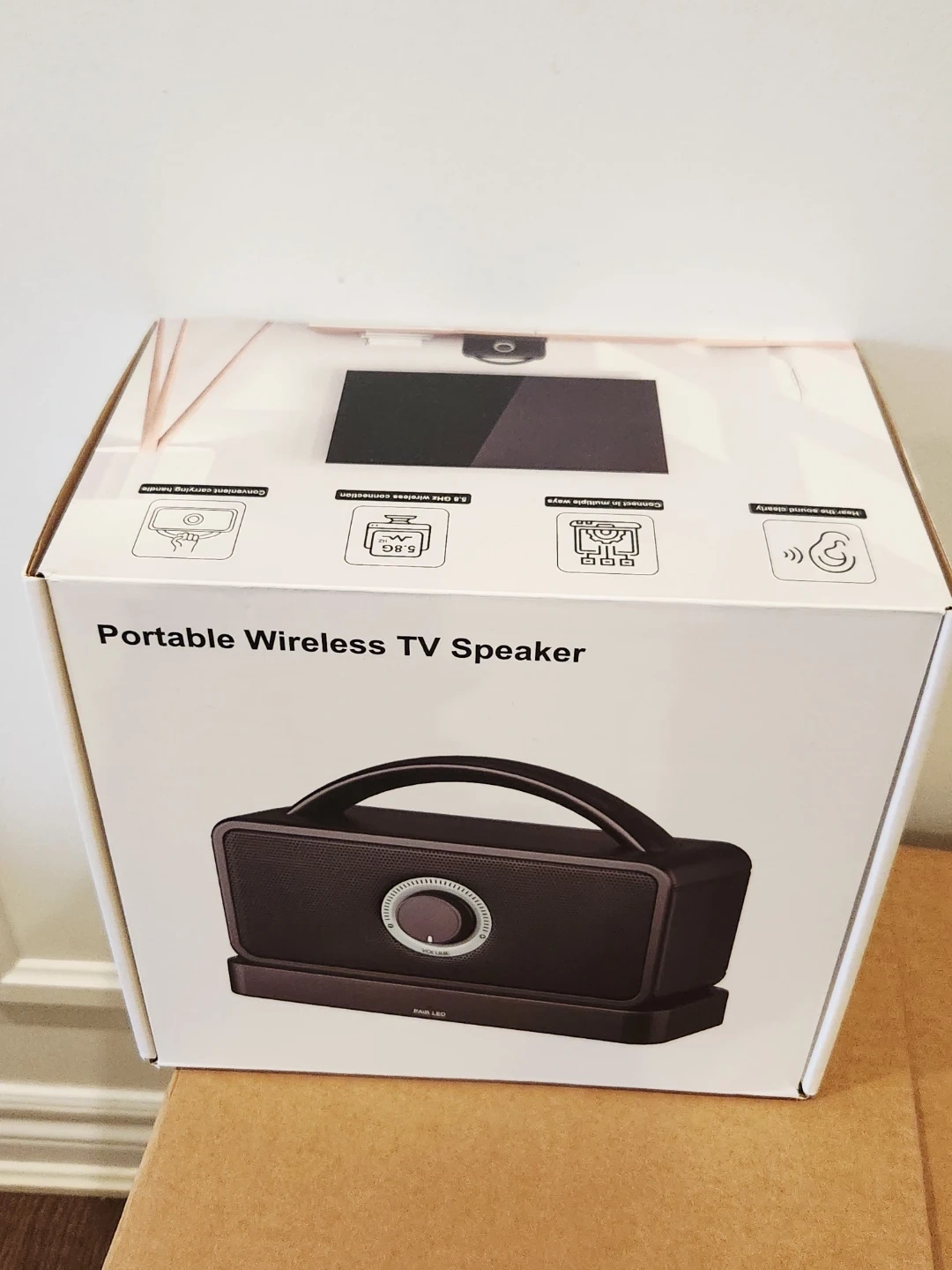 Selling a portable wireless TV speaker! It comes with a convenient carrying handle, so you can easily move it around the house. The speaker connects in multiple ways and has a 5.8 GHz wireless connection. Hear the sound clearly with this speaker!