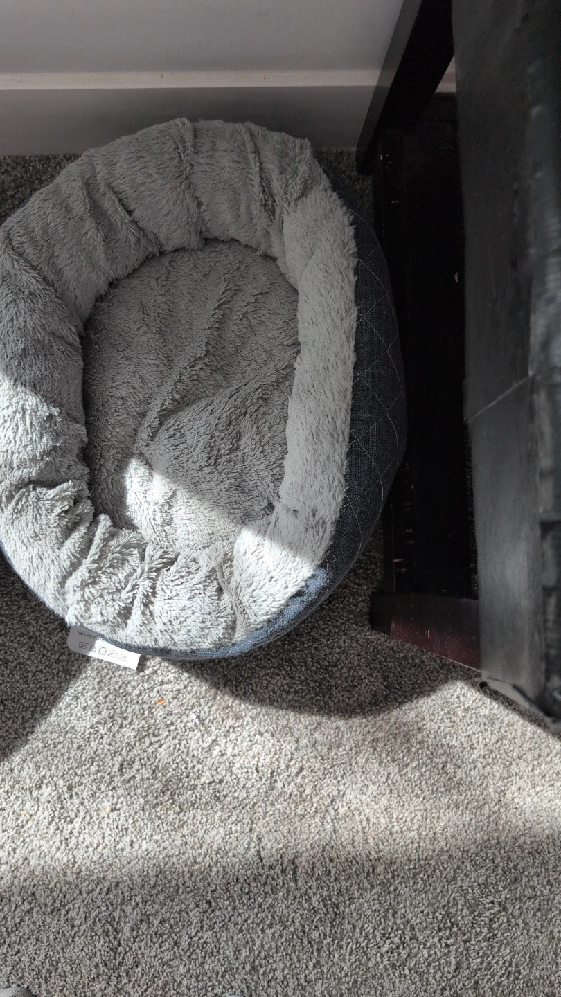 Soft and cozy plush pet bed for your furry friend. It's made with 100% polyester filling and features a comfortable fleece lining. This bed's round shape provides a secure and snug resting spot for cats or small dogs. It's perfect for naptime or a good night's sleep!