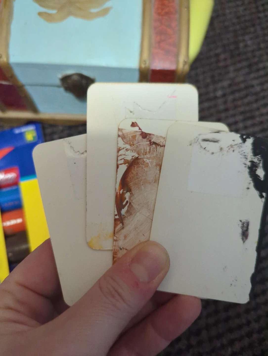 Scraper cards for stencilling - used