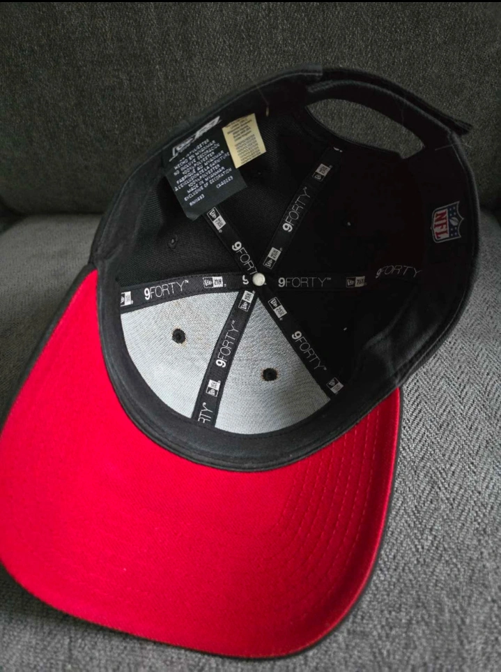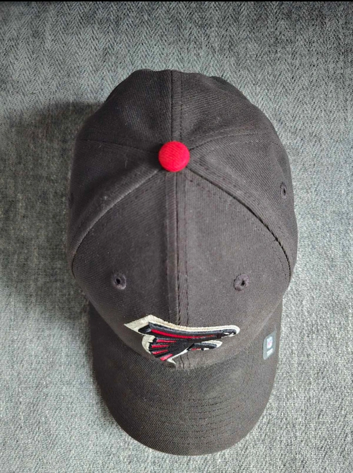 Black Atlanta Falcons hat. Features team logo. Adjustable sizing. Red underside. Smoke free. Pickup only.