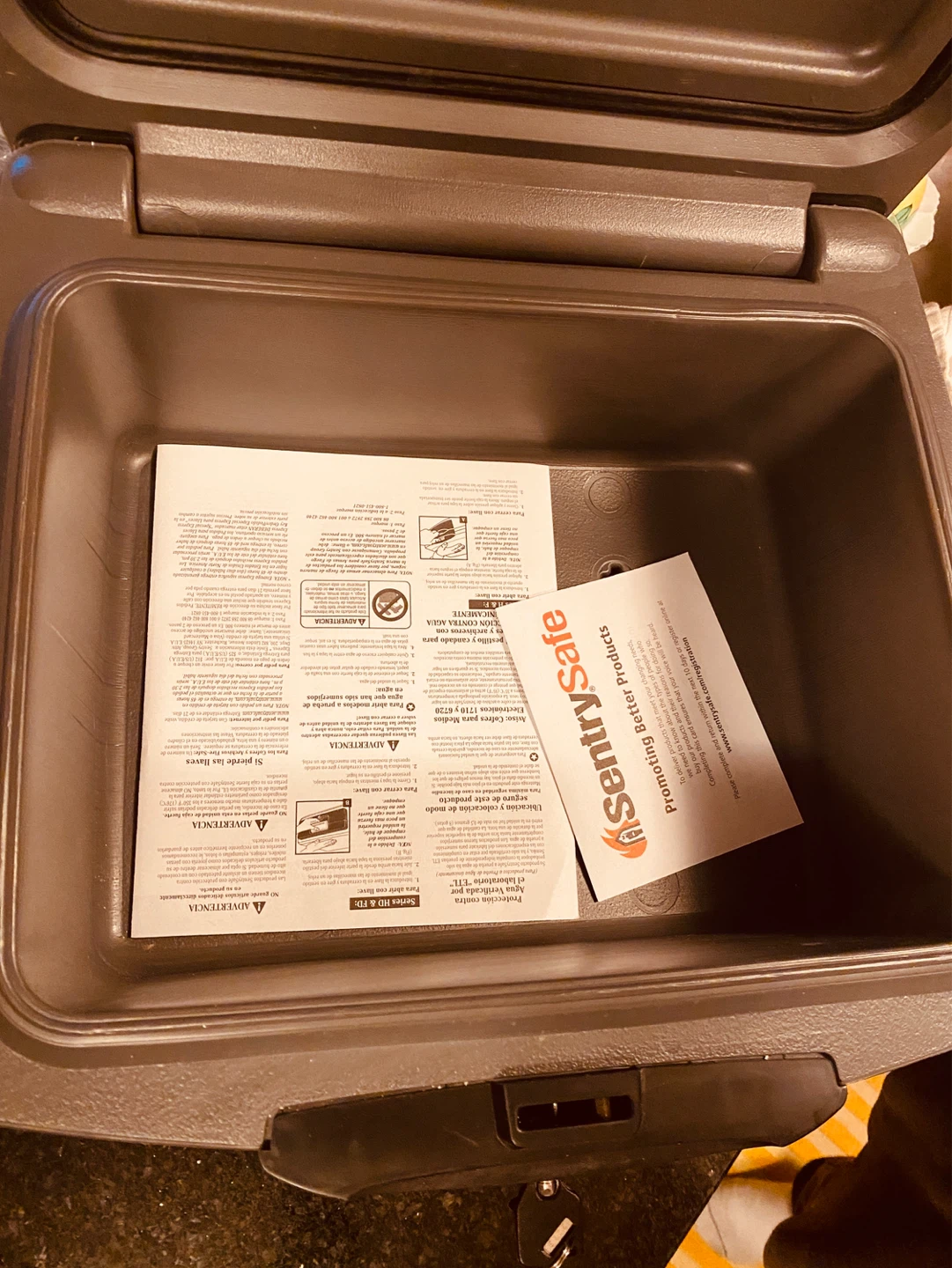 This SentrySafe H2300 safe box offers fire and water protection for important documents and valuables. It's made in the U.S.A. and includes a key lock for security. This safe is ideal for protecting critical items from household disasters.