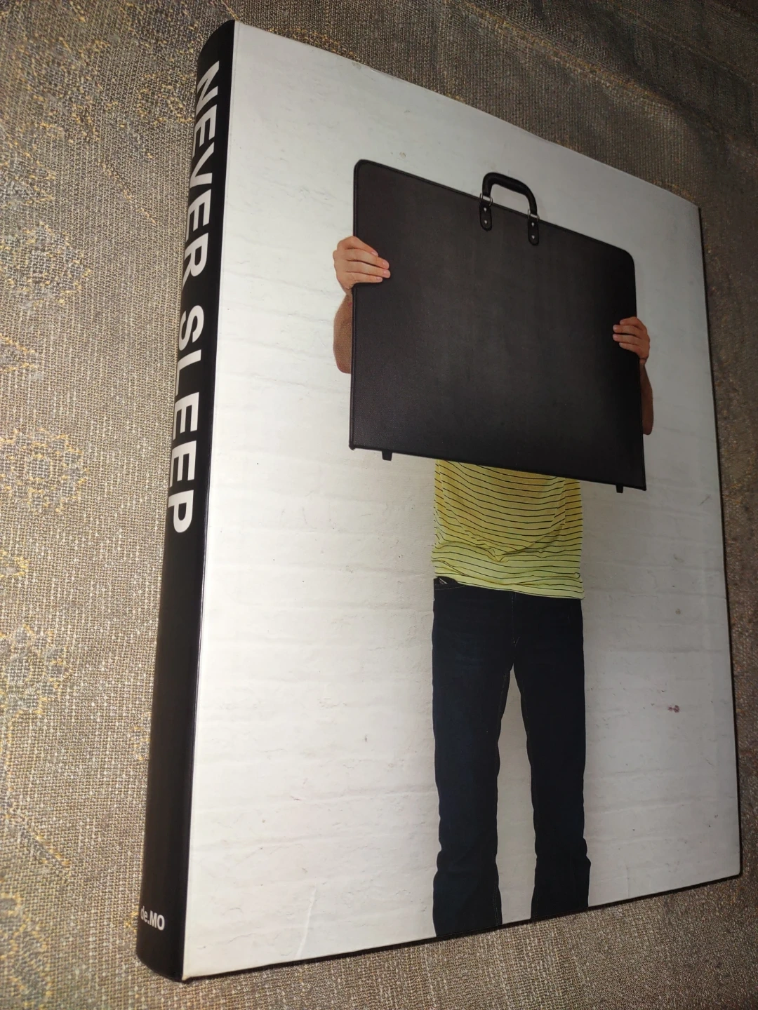 Never Sleep by de.MO — a graphic design and branding-focused book featuring strong visual identity work and modern design concepts. Includes introduction by Michael Vanderbyl.