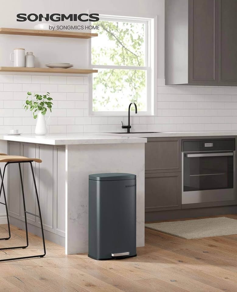 Upgrade your kitchen with a premium SONGMICS stainless steel trash can, brand new, never used, with original tags and original packaging. Modern design, soft-close lid, and a compact size — perfect for kitchens, condos, offices, or bathrooms.